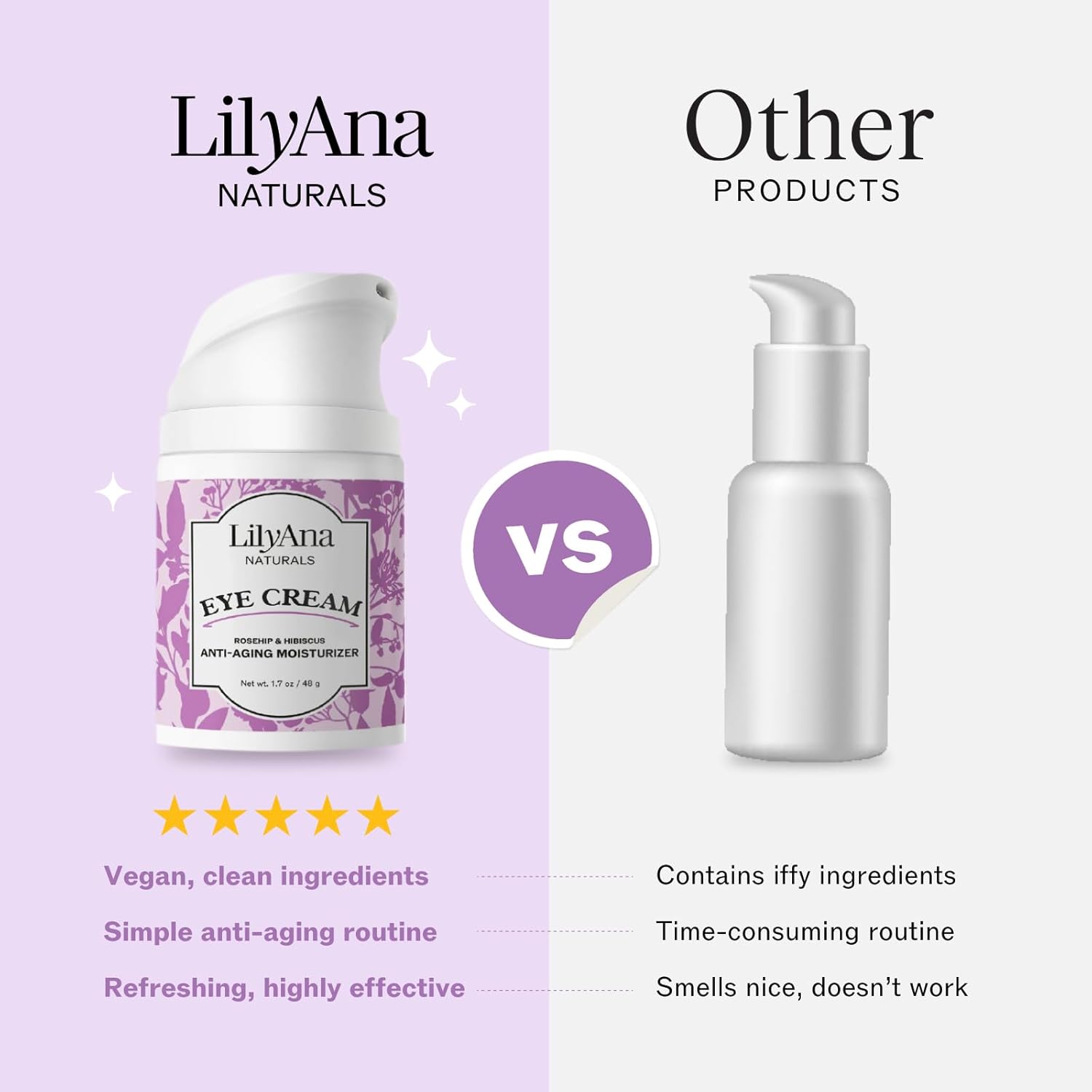 LilyAna Naturals Eye Cream for Dark Circles and Puffiness, Under Eye Cream for Wrinkles and Bags, Anti Aging Eye Cream helps Improve Dryness; for Sensitive Skin - 1.7 oz - Made in USA