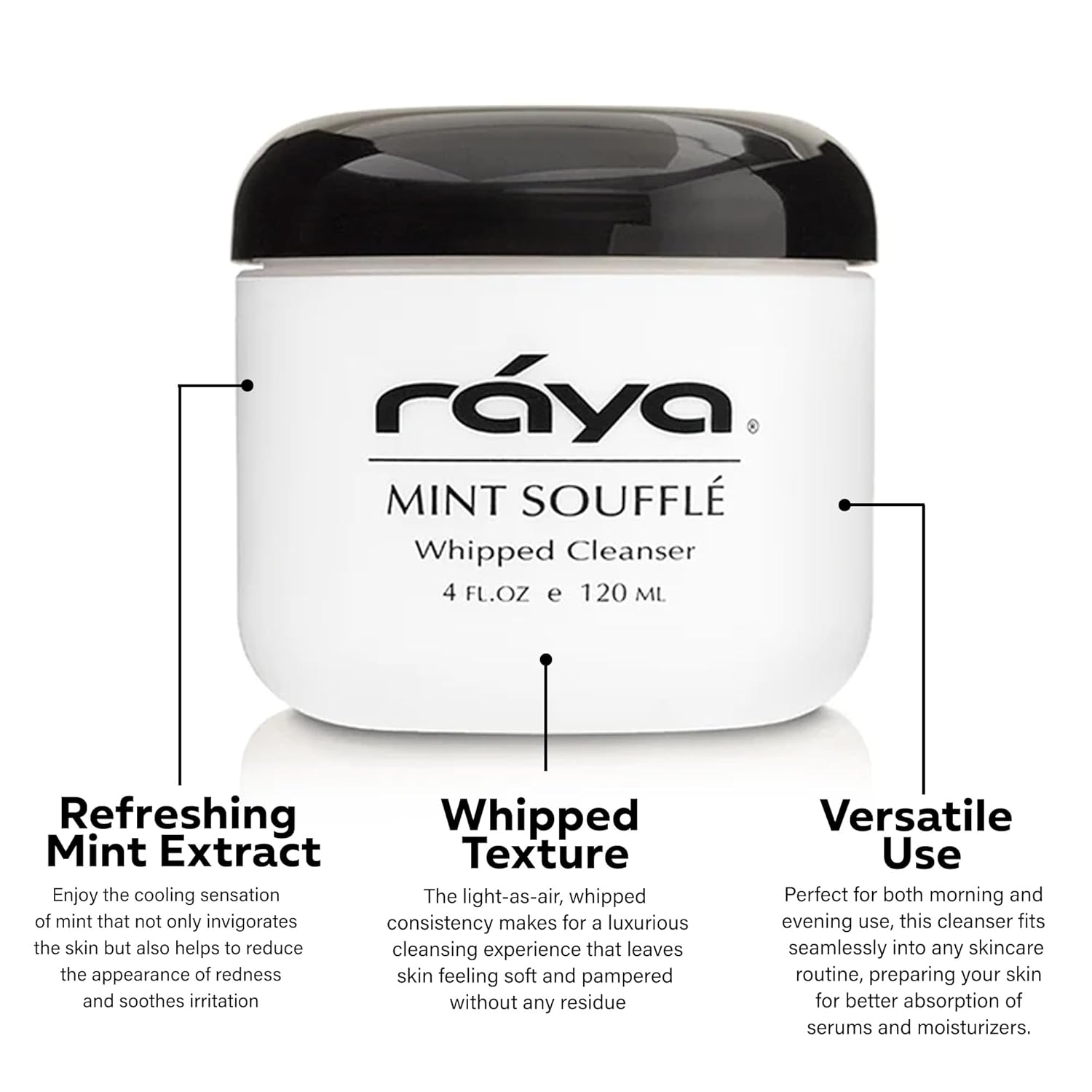 Raya Mint Soufflé Facial Cleanser (102) - Face Wash for Sensitive Skin, Combination & Oil Skin, Clears Pores, Sensitive Formula, Mint, 4 oz