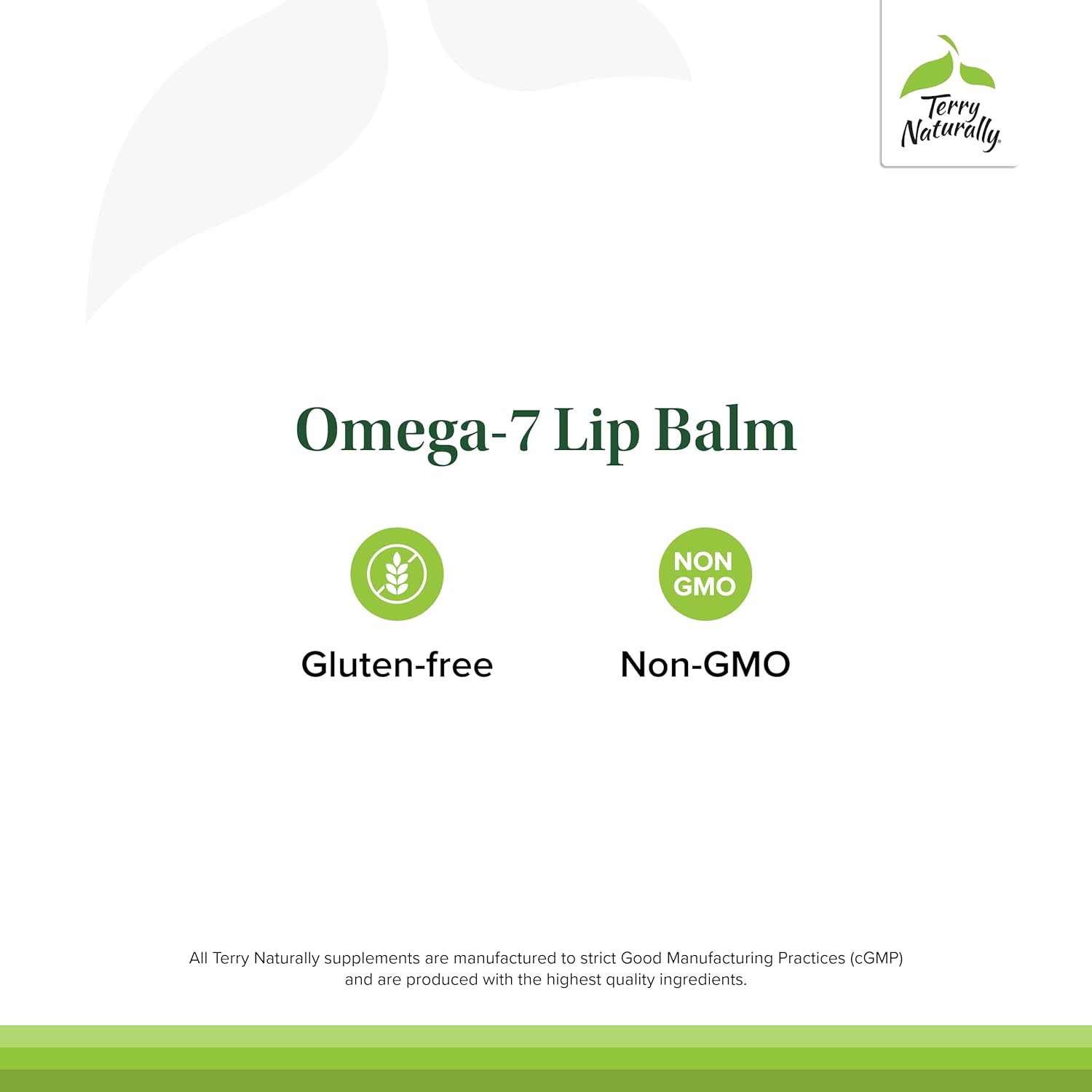 Terry Naturally Omega 7 Lip Balm - Hydrating Lip Care for Dry & Cracked Lips - Moisturizing Lip Balm with Organic Beeswax & Coconut Oil - Sea Buckthorn Seed Oil for Soothing Lip Care - 3 Pack