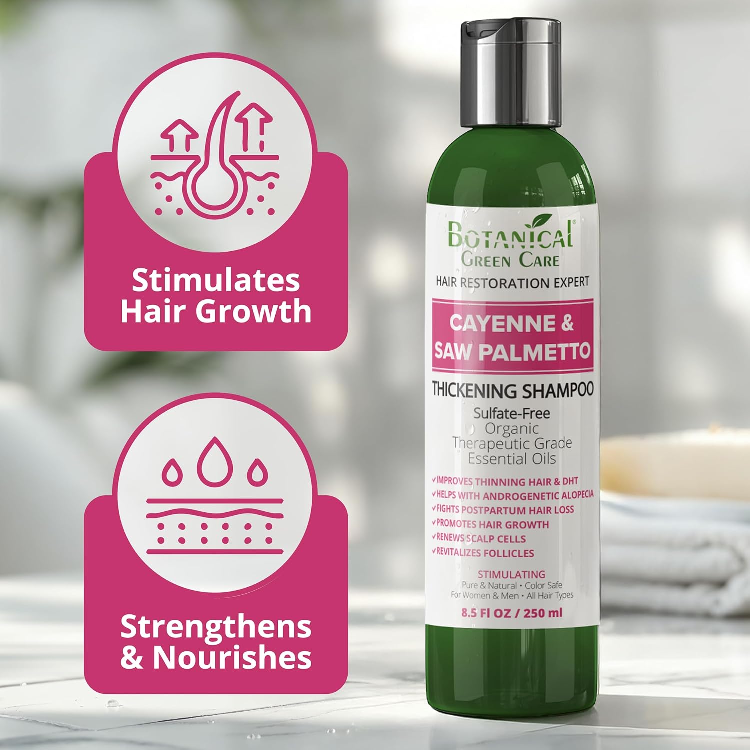 - Premium Quality – Crafted with Science & Nature. Made in the USA with high-performance botanical ingredients, this shampoo helps support the look of thicker, healthier-looking hair while maintaining scalp and volume balance.