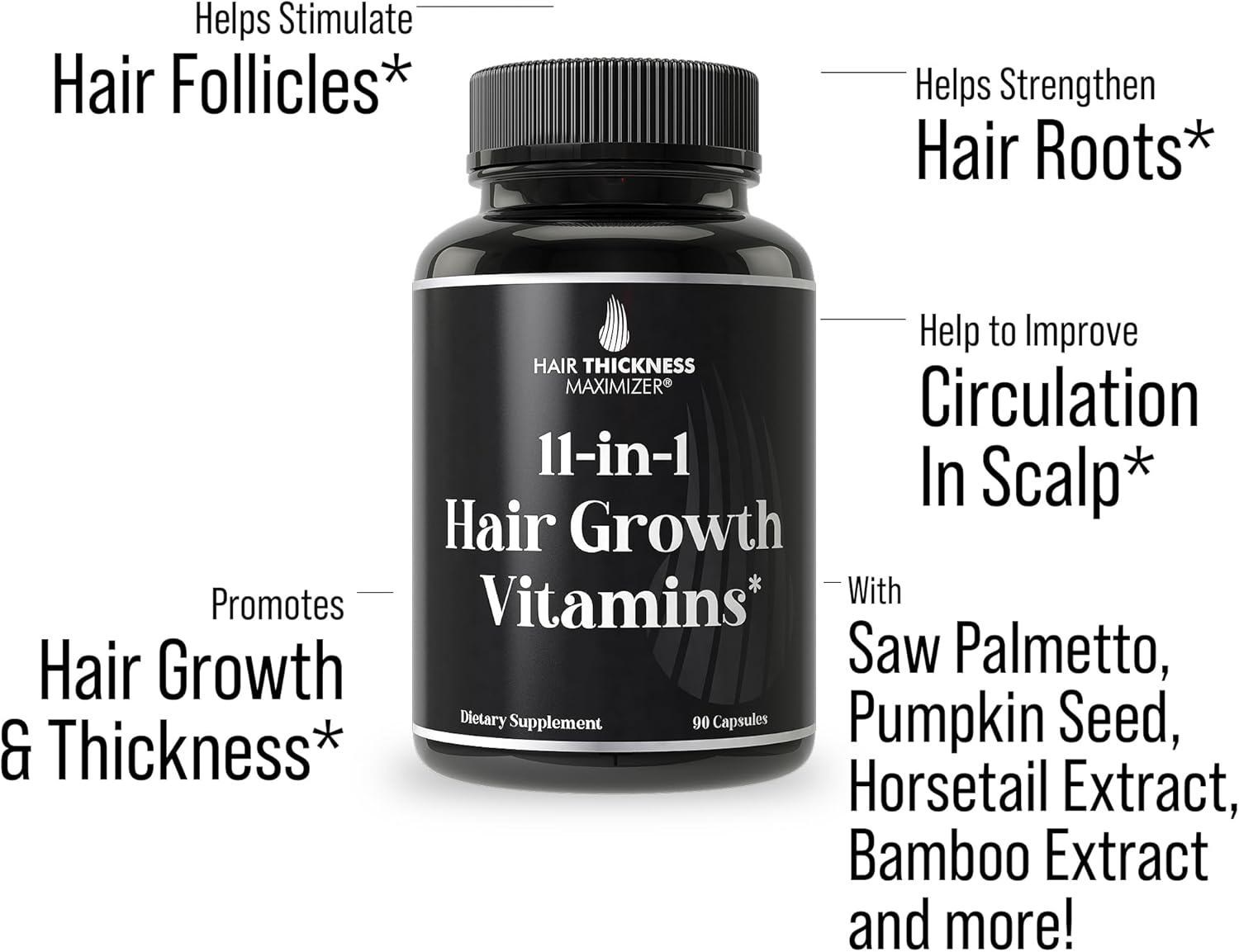 - Primary Supplement Type : 11-in-1 Vegan Hair Growth Vitamins including, Biotin, Niacin Vitamin B6, Vitamin B12, Magnesium, Zinc, Copper, Saw Palmetto Berry Powder, Pumpkin Seed Powder, Horsetail Extract, Bamboo Extract and more! 11-in-1 Vegan Hair Growth Vitamins including, Biotin, Niacin Vitamin B6, Vitamin B12, Magnesium, Zinc, Copper, Saw Palmetto Berry Powder, Pumpkin Seed Powder, Hor… See more
