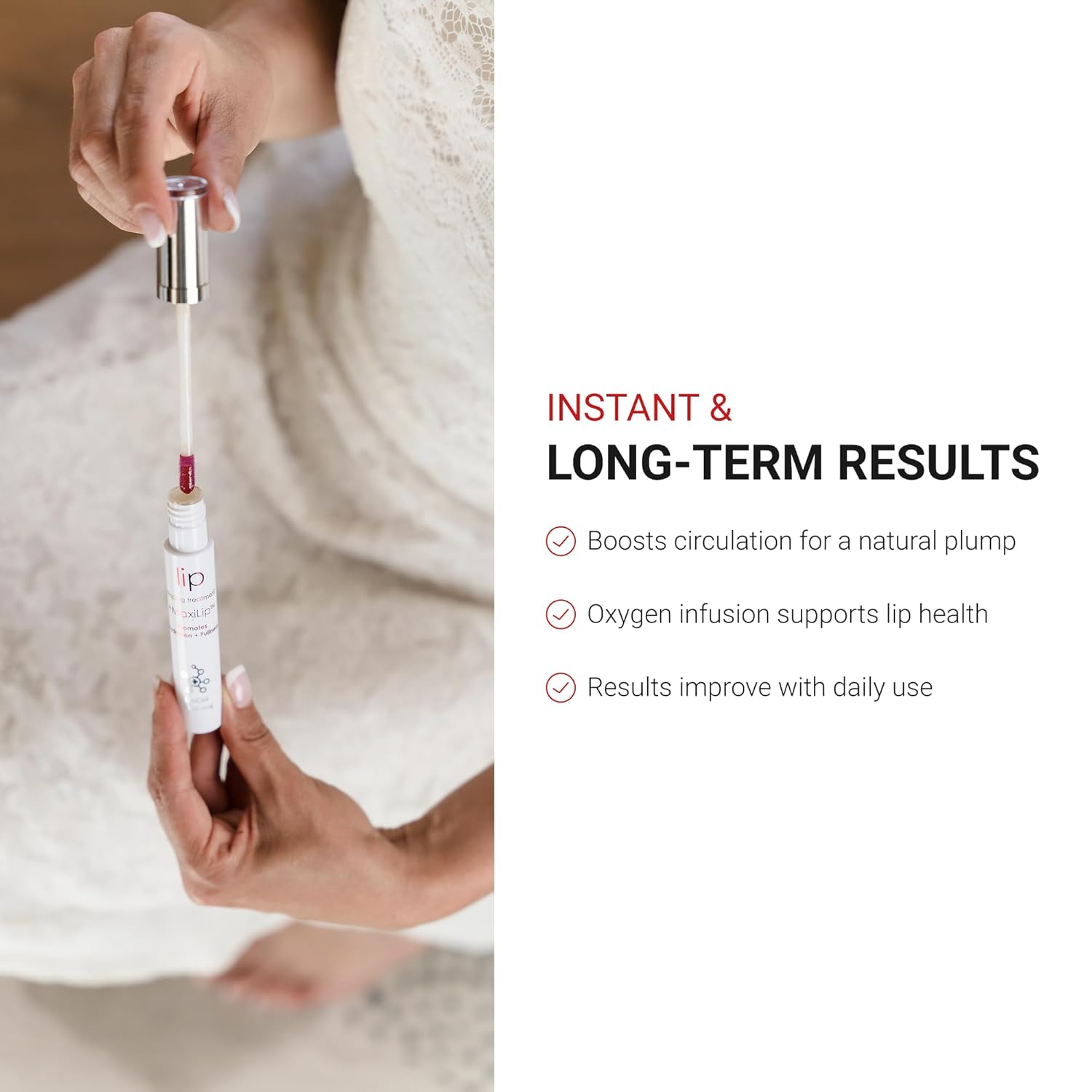 - BOOSTS CIRCULATION FOR A NATURAL PLUMP EFFECT MaxiLip helps increase oxygen and blood flow to the lips, creating a temporary plumping effect and longer-term lip health when used daily—ideal for aging or thinning lips.
