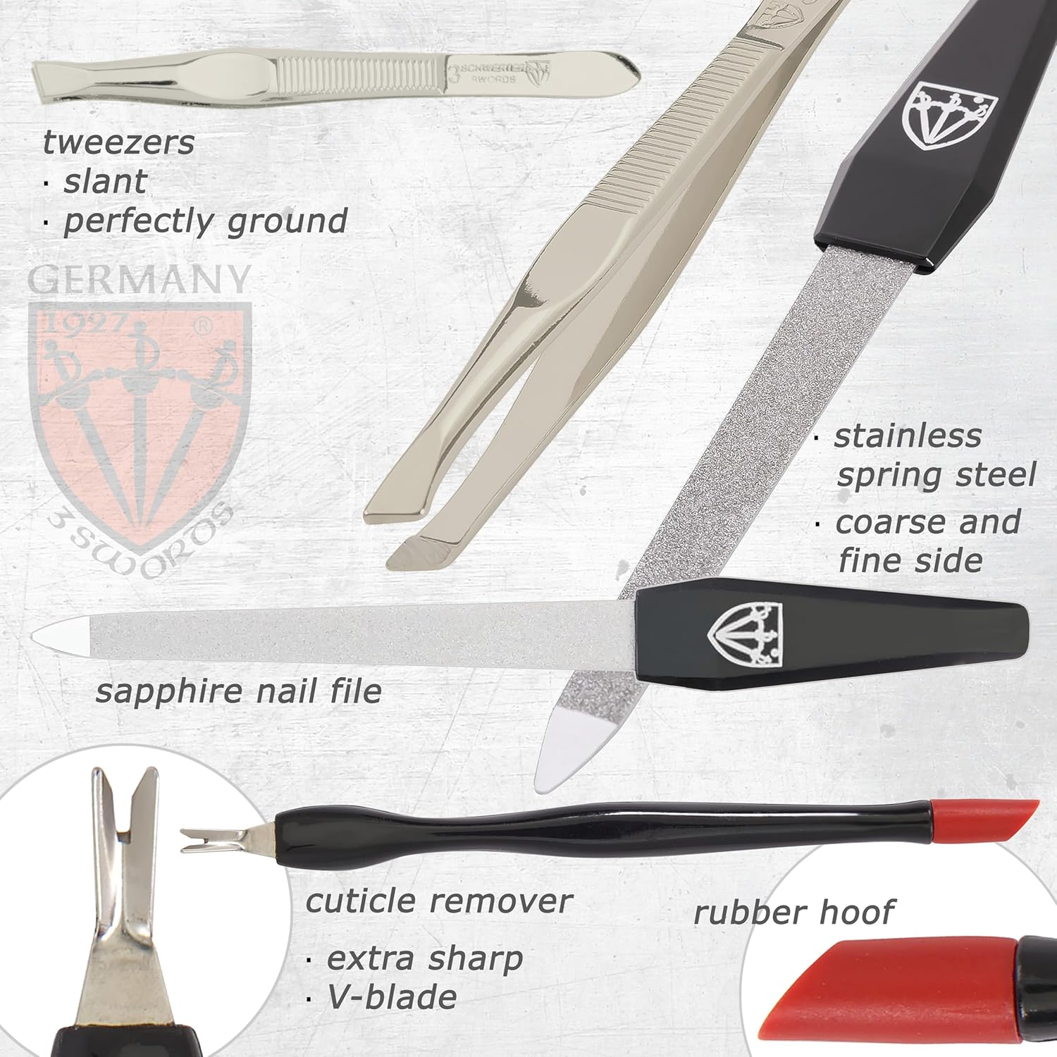 - NAIL CARE KIT from 3 Swords Germany with professional manicure and pedicure tools. Our sets for home and travel use convince trough highest levels of quality, modern design, durability and German engineering combined with a first class customer service.