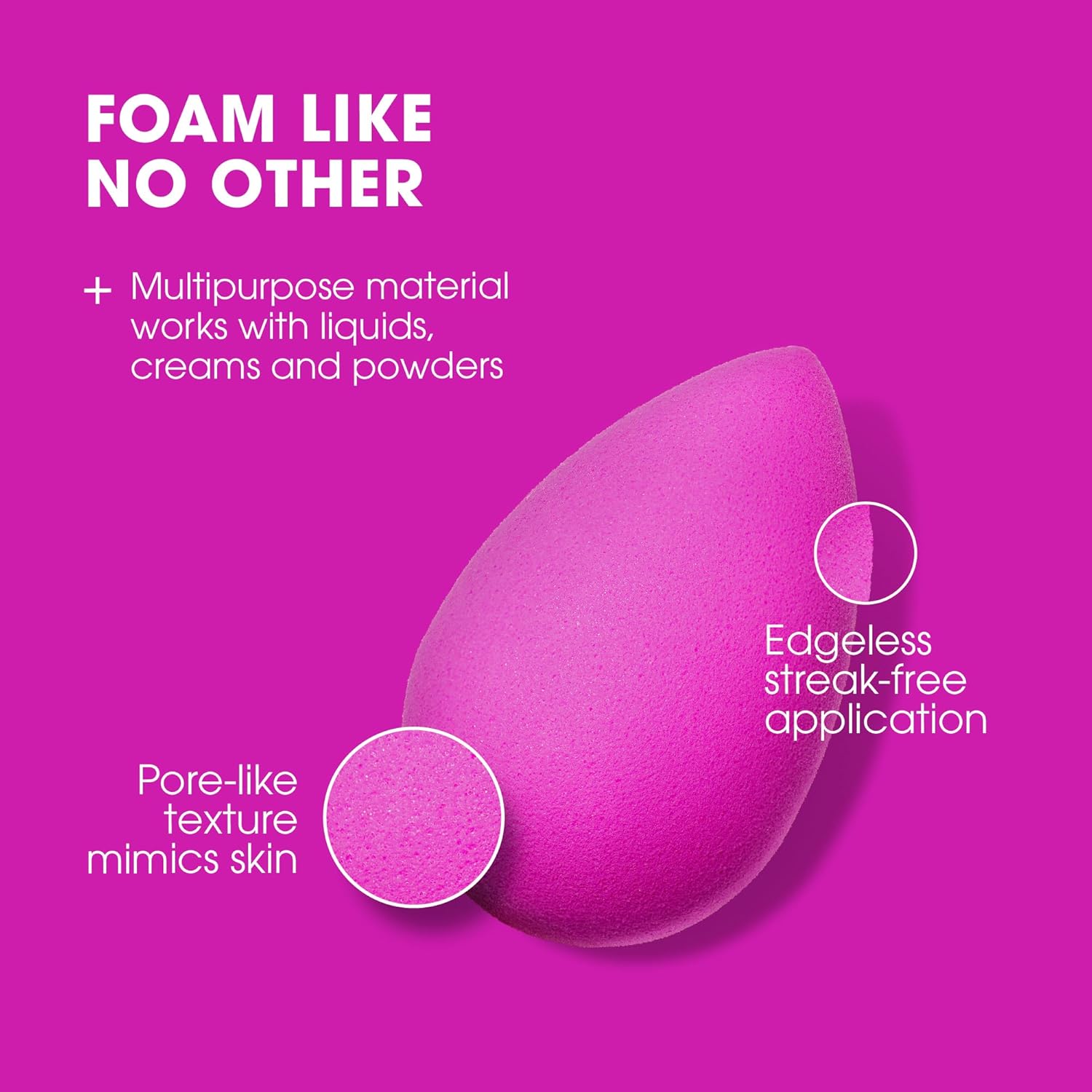 - Multi Use Makeup Sponge: The electric violet sponge is the perfect partner for any shade highlighter, foundation or concealer. the large rounded surface area of the sponge ensures a quick application, while the contoured tip offers precision. perfect for anyone on the go.