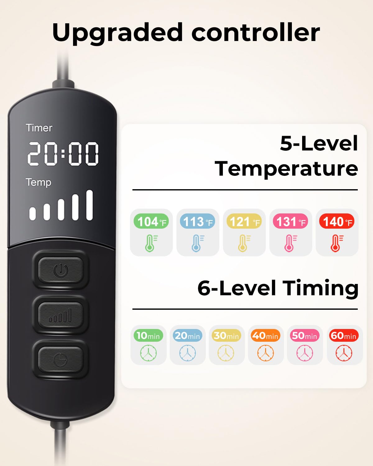 - 【5-Level Heat Temperature & 6 Timing Settings】The electric heated eye mask is specially designed with 5 heat temperature levels ranging from 104℉ to 140℉ and 6 timing settings(10, 20, 30, 40, 50 or 60 minutes). Ophthalmologists suggest a 15-minute,108℉ warm compress for optimal results.