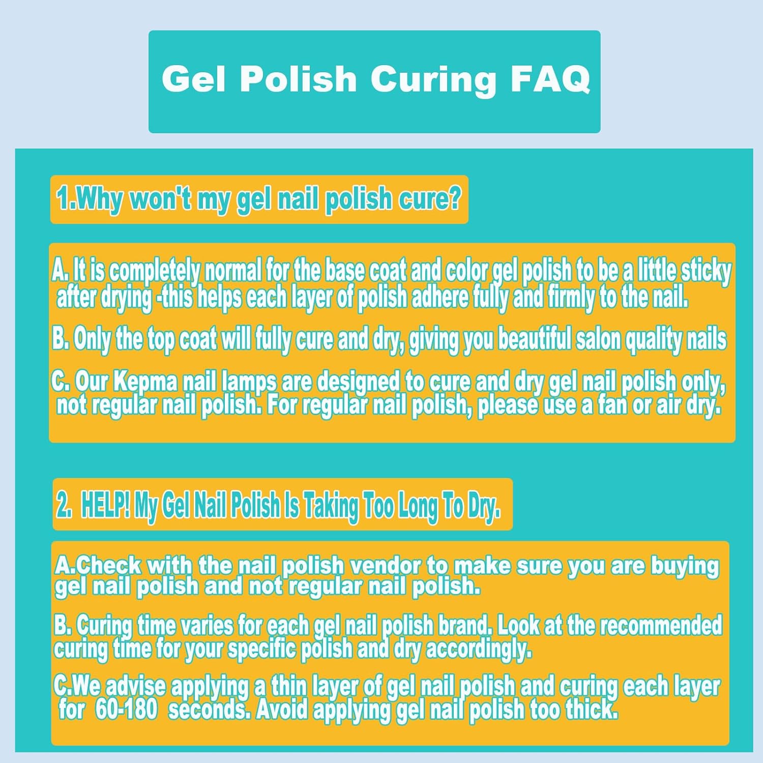 - 5.【Warranty】100% customer satisfaction is our pursuit, we can provide 12 months warranty.Warm Tips:Please notice the lamp size before placing an order . It is normal for gel nail polish to feel sticky after curing.DO NOT WIPE. It is recommended to apply as thin a coat as possible when applying gel nail polish. The curing time will be shorter.