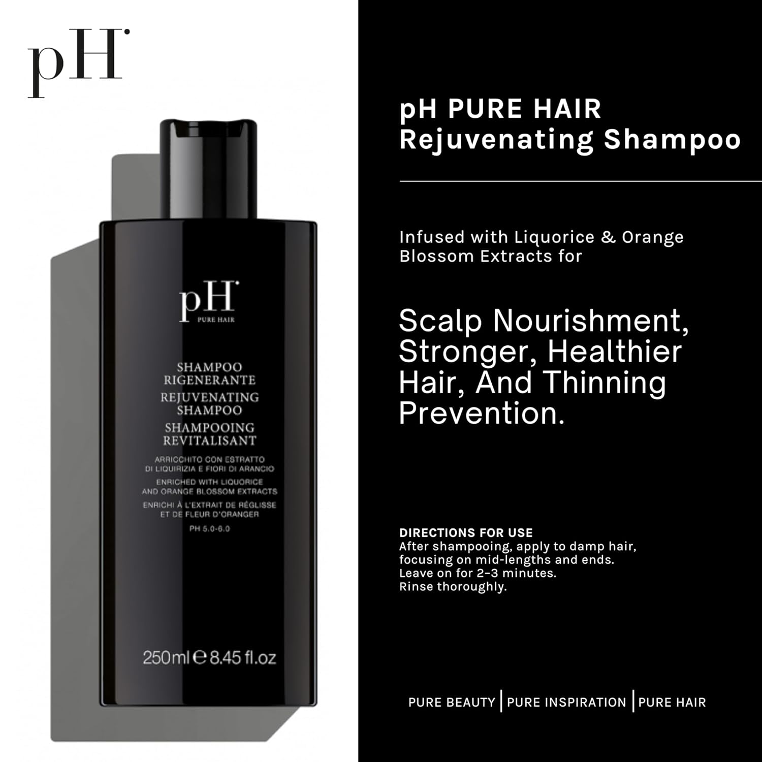 - Luxurious Hair Loss Solution: pH Labs Rejuvenating Shampoo is expertly crafted to address hair thinning and loss, encouraging the growth of thicker, fuller locks with its luxurious blend of essential extracts