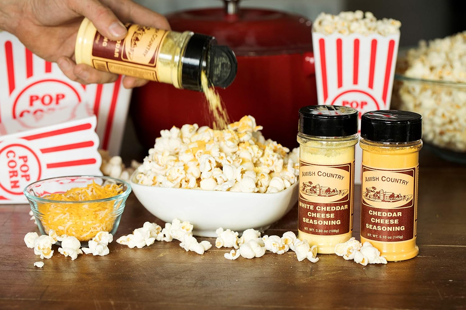 Amish Country Popcorn | Seasoning Variety Pack | Cheddar Cheese - 4.7 oz and White Cheddar Cheese - 3.8 oz Popcorn Seasoning | Old Fashioned, Non-GMO and Gluten Free