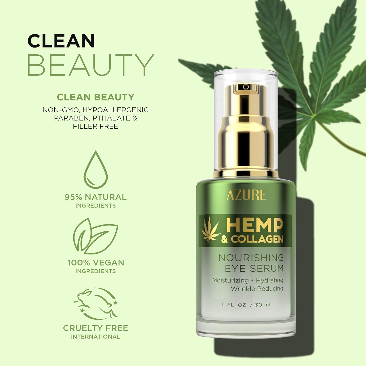 AZURE Hemp & Collagen Nourishing Eye Serum - Moisturizing, Firming & Toning | Reduces Wrinkles, Fine Lines & Under Eye Bags | Restores Tired, Dehydrated Skin | Made in Korea - 30mL / 1 fl.oz.