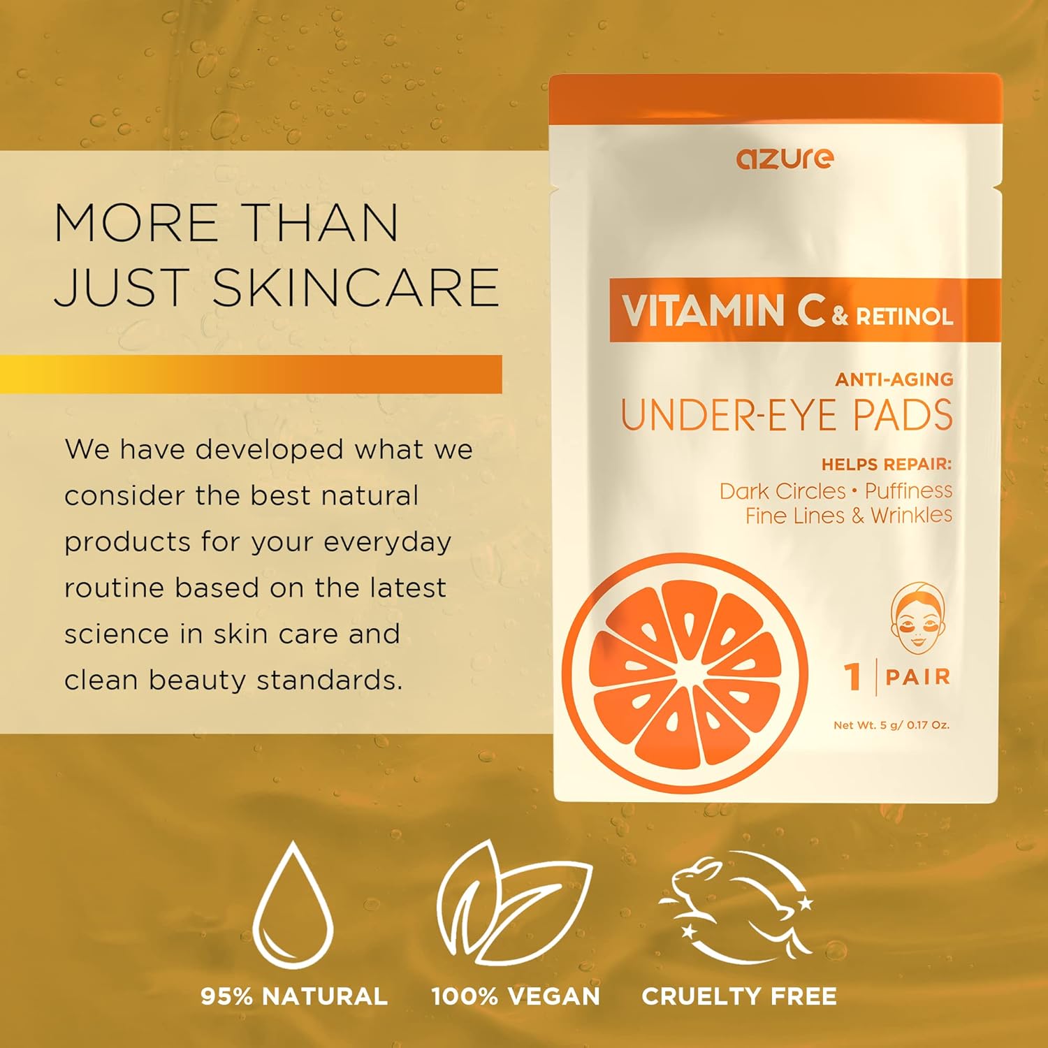 - PREMIUM ACTIVE INGREDIENTS: Our skincare products are made from high-quality ingredients. Our under-eye masks are infused with Vitamin C, which brightens, refreshes, and hydrates your skin while helping to diminish signs of aging. Retinol evens the skin tone and lightens the appearance of dark spots and hyper-pigmentation.
