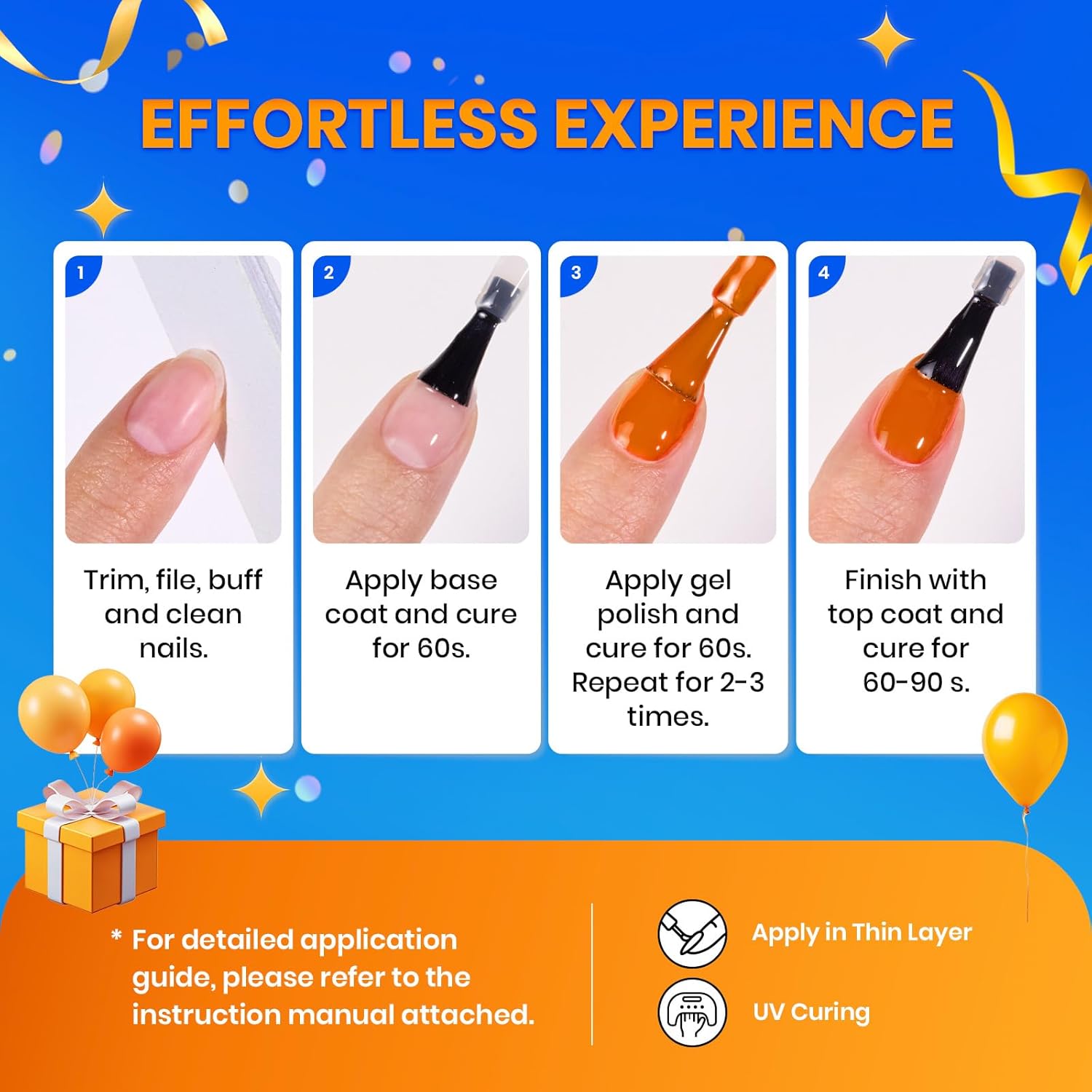 - Included Components : ), -Base Coat and Top Coat *3 (.25 fl.Oz/Each,, -Nail Gel Polish *20(.17 fl.Oz/Each), Free Gift
