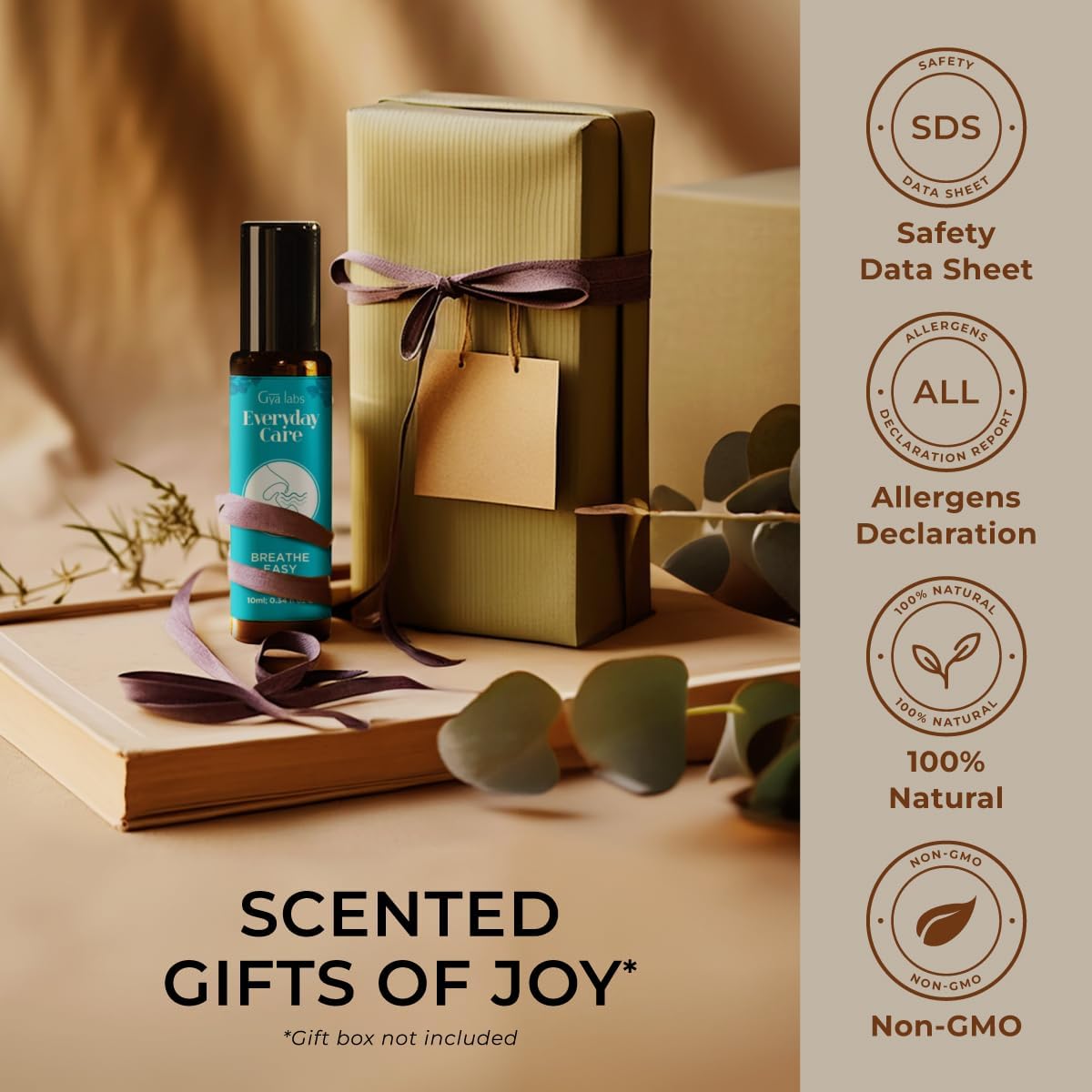 Gya Labs Breathe Essential Oil Roll on - 100% Pure Natural Cooling Peppermint, Eucalyptus & Tea Tree Blend, Aromatherapy Oil Roller, Travel Size (0.34 Fl Oz)