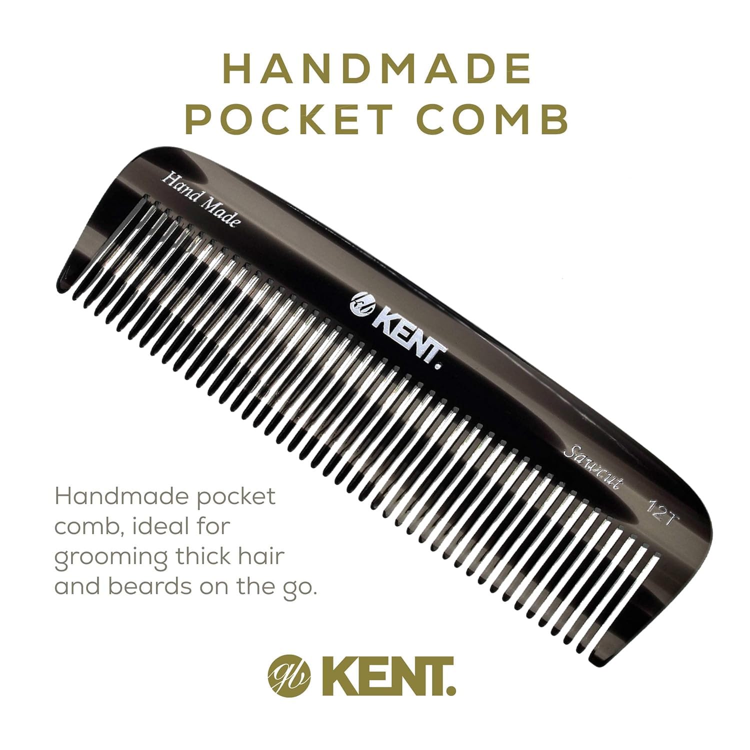 Kent 12T G Wide Tooth Detangling Comb - Handmade Pocket Comb for Thick, Curly, Wavy Hair - Large Tooth Hair and Beard Grooming Comb - Saw-Cut and Hand Polished