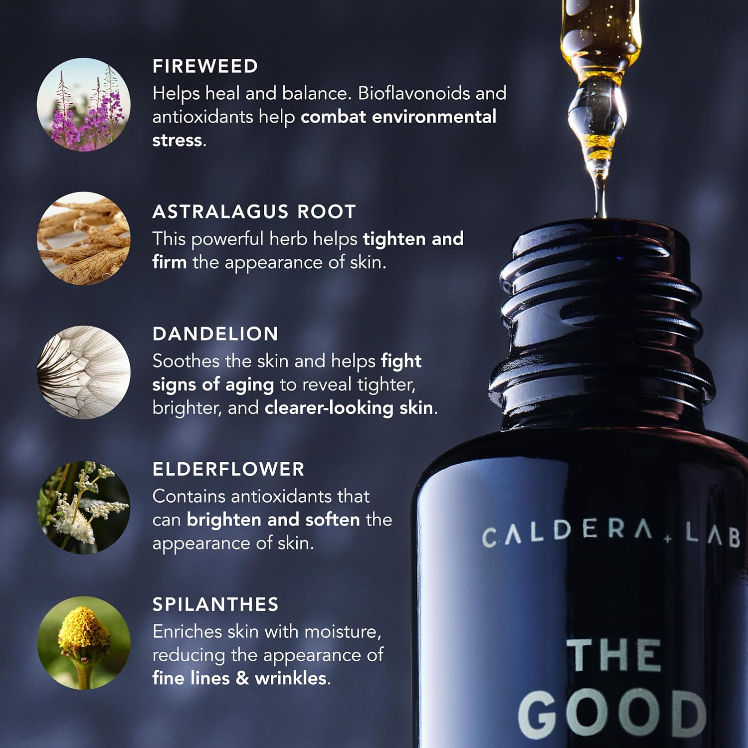Caldera + Lab The Good | Men's Organic Moisturizing Face Serum for Dry, Sensitive, & Normal Skin – Vegan, Natural & Antioxidant Packed Skincare Facial Oil