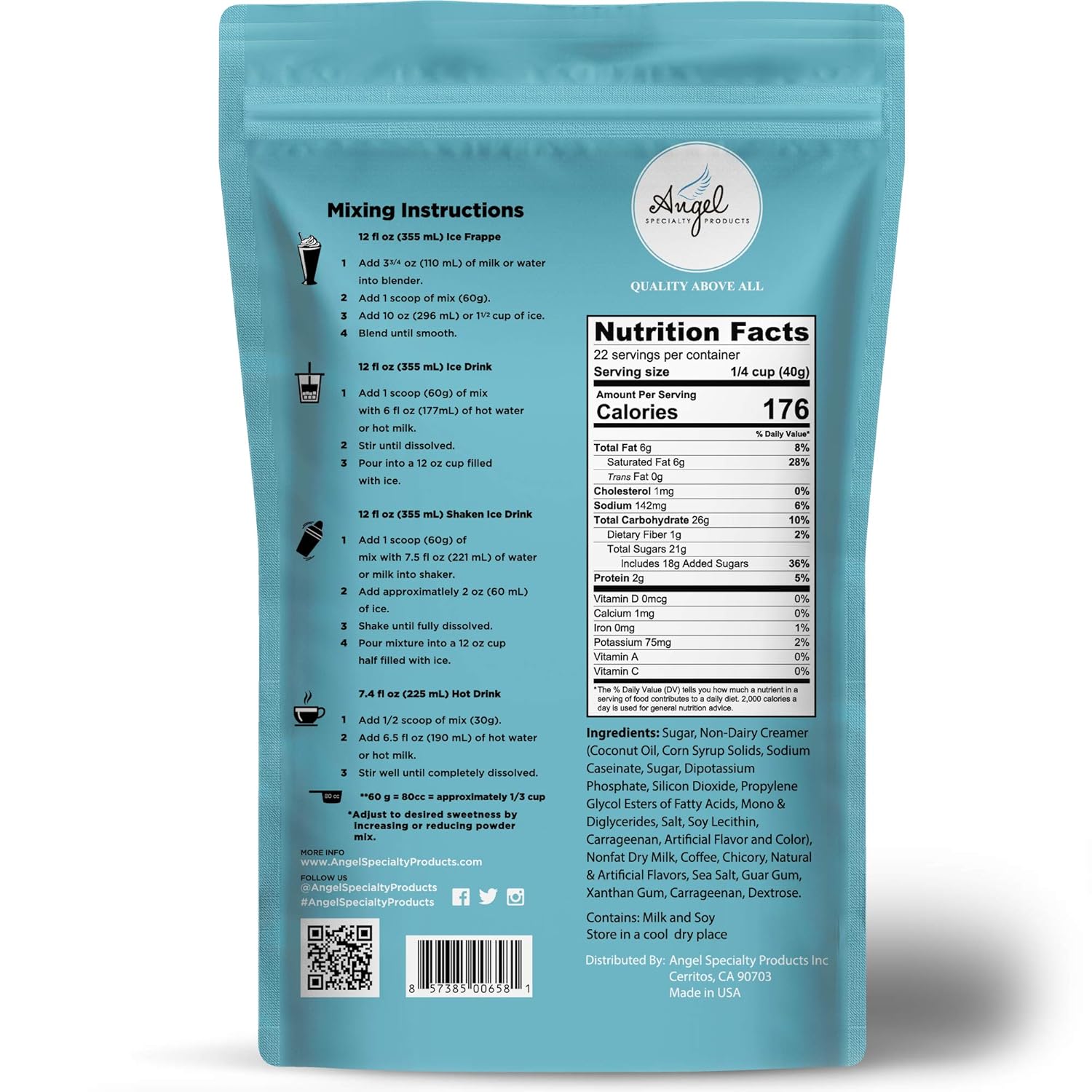 - CUSTOMIZE YOUR OWN KIT (DIY & CREATOR FRIENDLY): Angel Specialty Products' instant mixes make it easy for anyone to be a barista. Pair with your own choice of products available on Amazon such as Boba Tapioca Pearls, Straws, and Serveware to deliver delicious, unique drinks with your signature aesthetic.