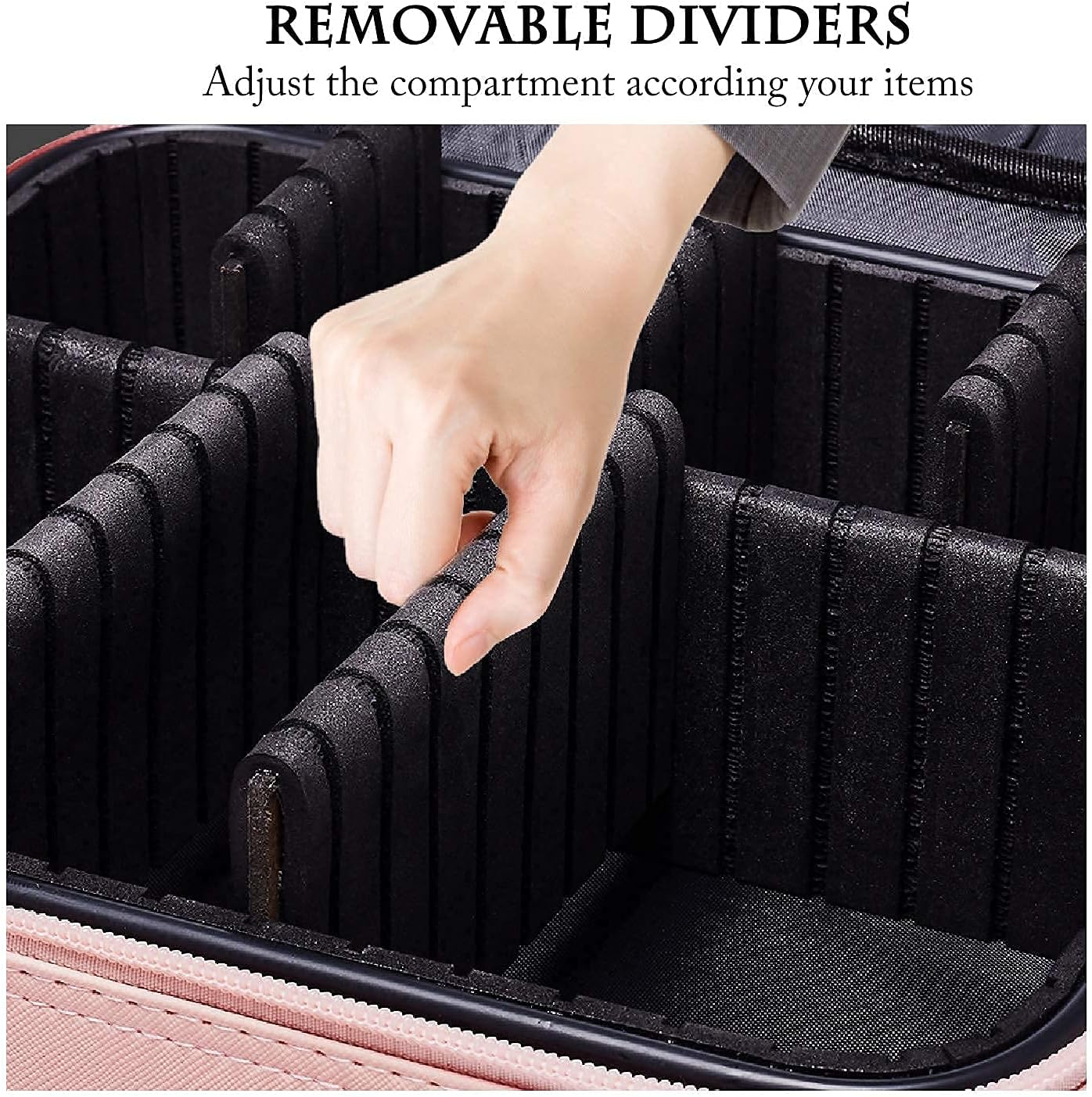 - SPECIAL DESIGN:This makeup organizer case has several compartments and makeup brushes slots, you can keep all necessities tidy and orderly. You can rearrange adjustable compartments to fit your needs.【SPECIAL DESIGN】This makeup organizer case has several compartments and makeup brushes slots, you can keep all necessities tidy and orderly. You can rearrange adjustable compartments to fit your needs.