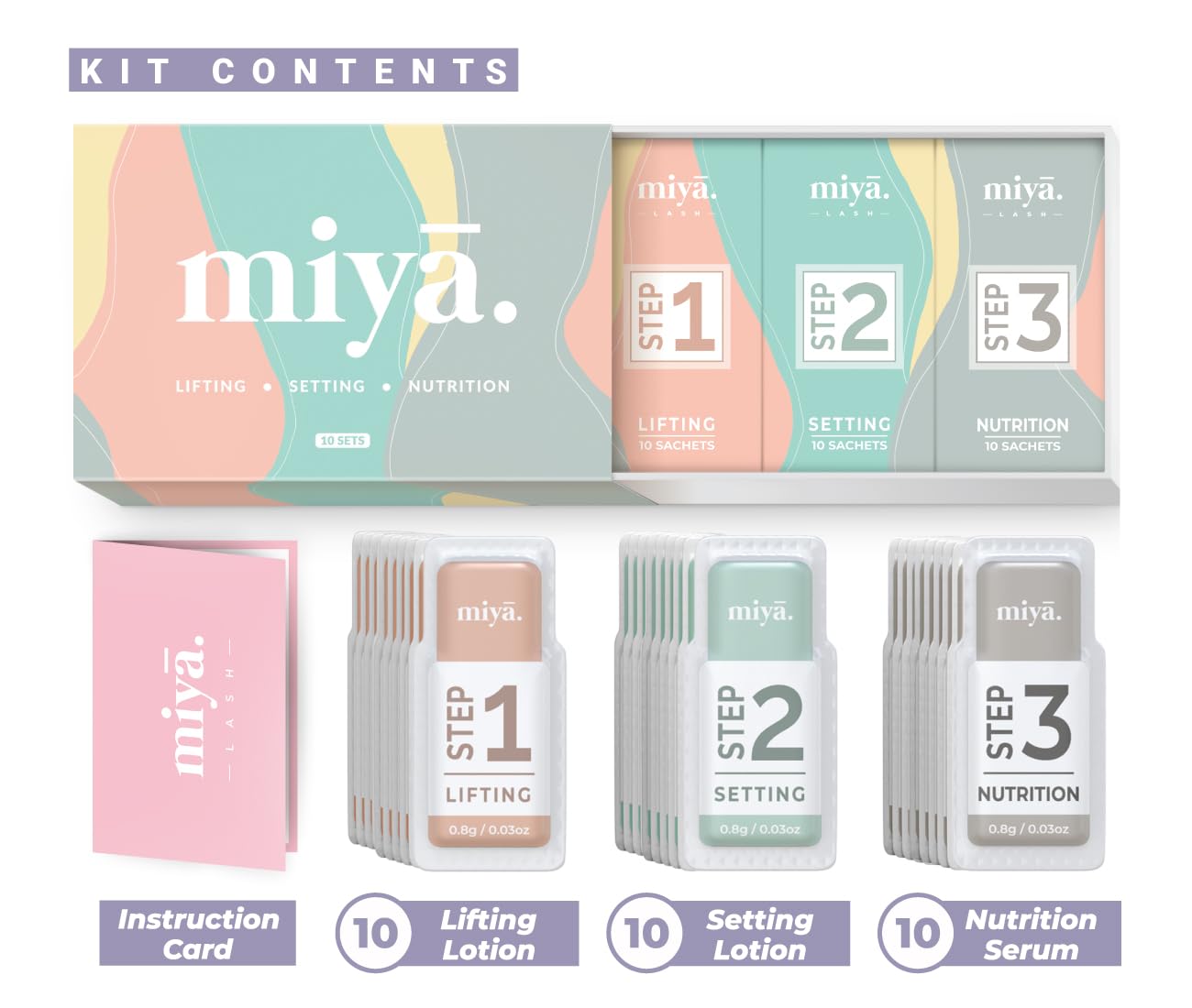- π 2 IN 1 LOTIONS FOR LASH LIFT & BROW LAMINATION β Specially formulated lotions that work wonderfully on lifting both lashes and eyebrows. Diligently tested and approved by Lash & Brows professionals. Create beautiful curled dolly lashes and perfectly shaped fuller, thicker eyebrows with Miya Lash!