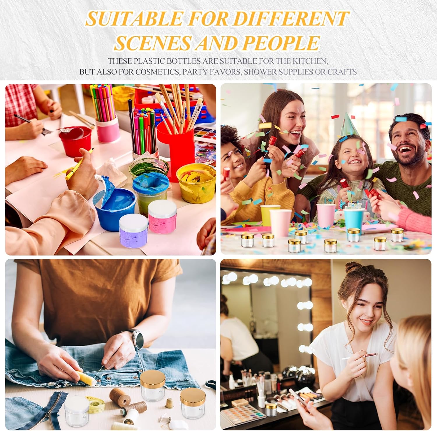 SATINIOR 36 Pieces 2 oz Plastic Jars with Lids Wide Mouth Airtight Reusable Container Acrylic Cosmetic Small Jars for Lotions Ointments Travel Toiletries Creams Make up Storage(Gold)