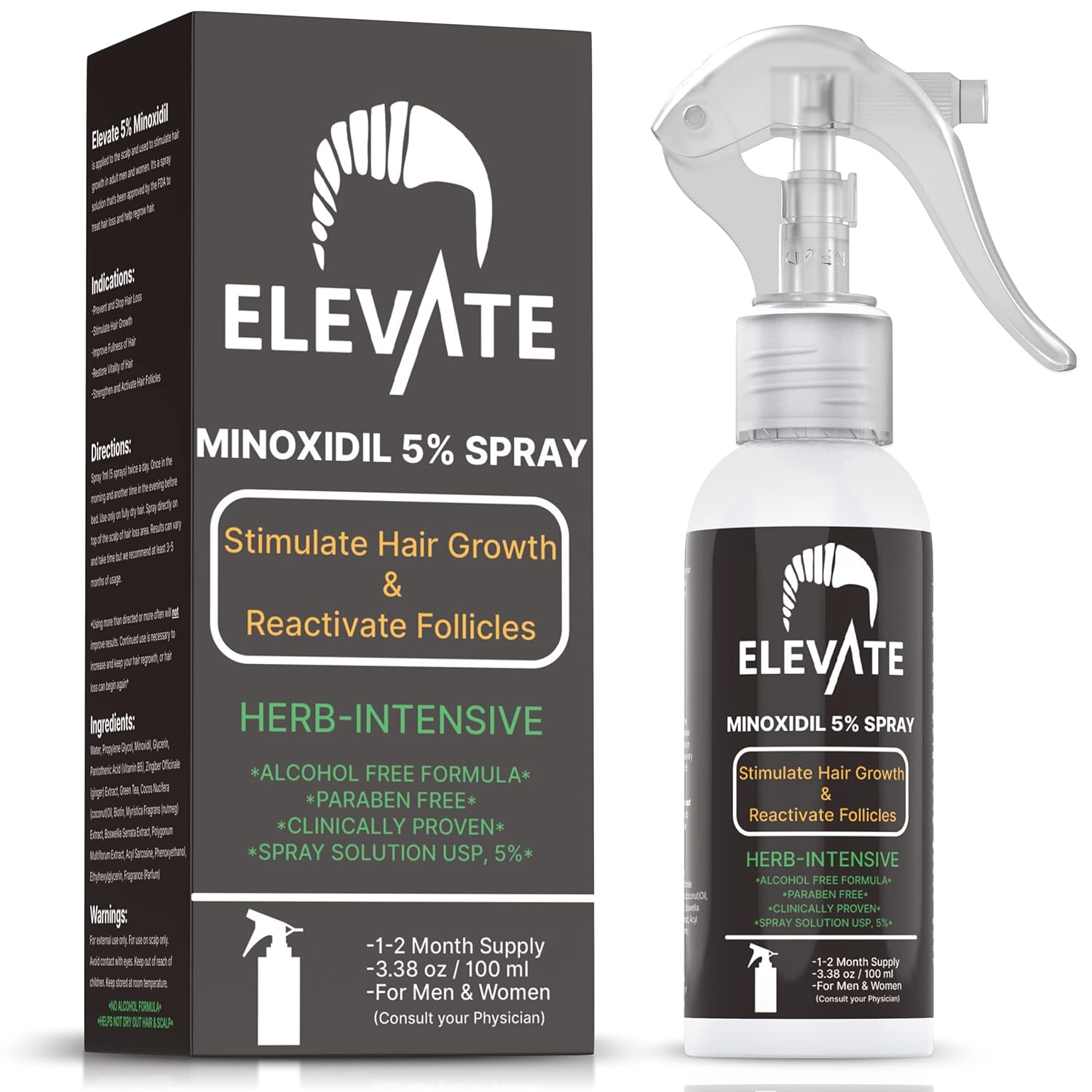 - CLINICALLY PROVEN TO REGROW HAIR: Elevate’s 5% Minoxidil Spray is powered by the #1 dermatologist-recommended ingredient for hair loss. It helps reactivate follicles, restore thinning areas, and support visible regrowth for fuller, healthier hair.