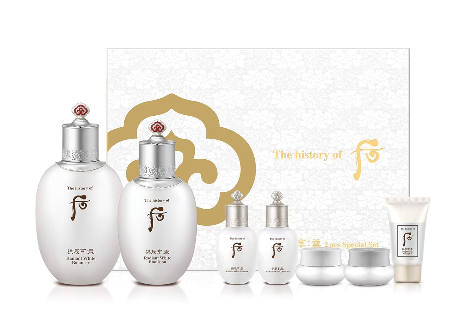 The History of Whoo Gongjinhyang Seol Special Set | Brightening Skincare Set for Instant Skin Radiance & Luminosity | Contains Gongjinhyang Seol Balancer,Lotion,Essence,Corrector,Cream & Sunscreen