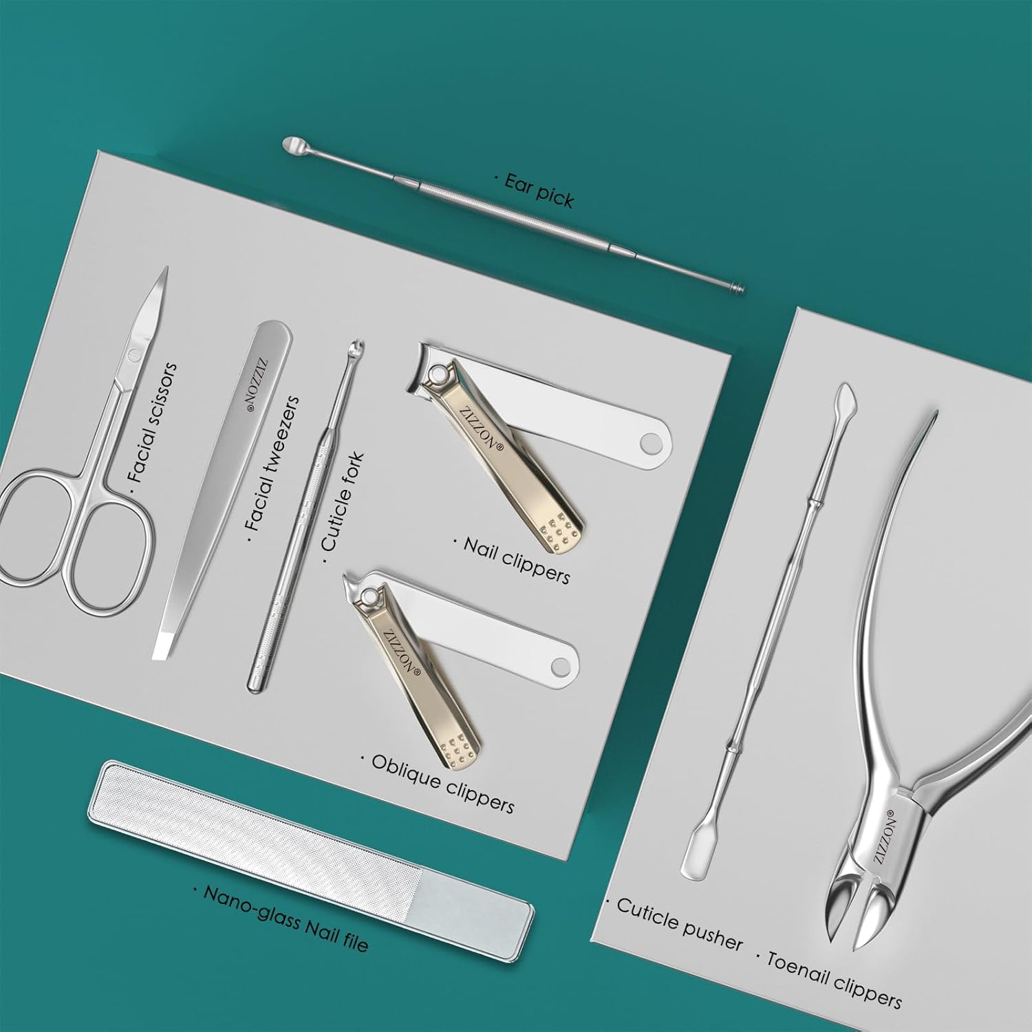ZIZZON Manicure Set Professional Stainless Steel Toenail and Fingernail Clippers Set 9 in1 Pedicure and Grooming kit with Travel Case (Black)