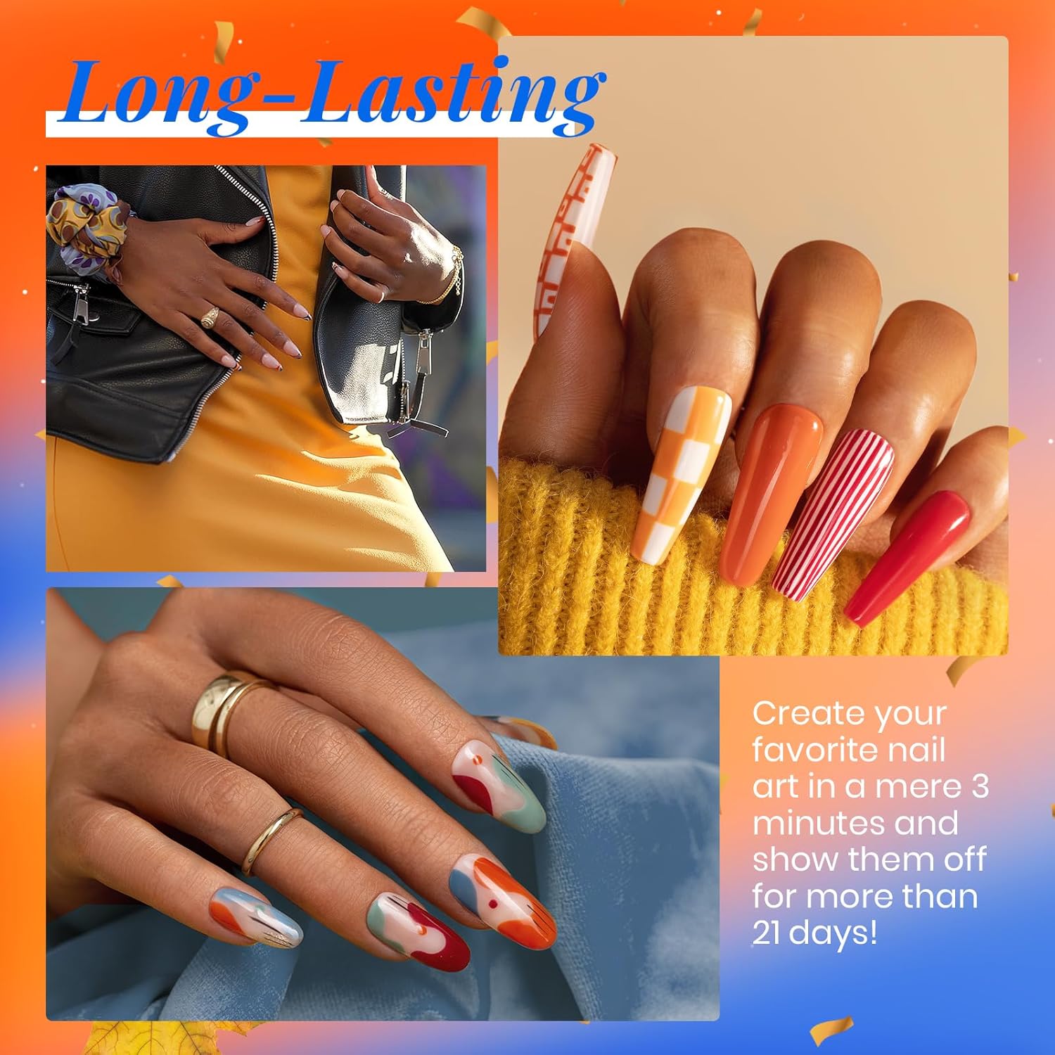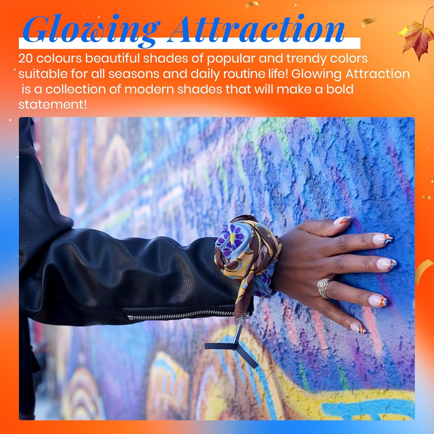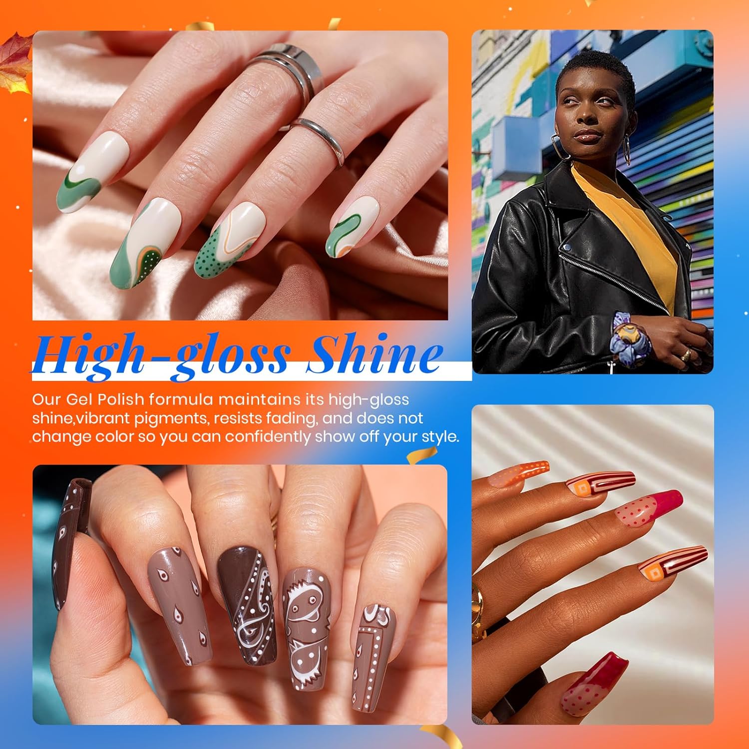 - DIY Home Gel Nail Polish Kit: 20 Orange, Burgundy, Red, Purple colors, as well as the base coat, matte, and glossy gel top, all in one box! This “Glowing Attraction” gel nail polish set includes every must-have color! An array of every shade you’ll need, such as gray, blue, green gel polish colors. Our color range will match any outfit you style your nails ! 2024 uñas de gel.