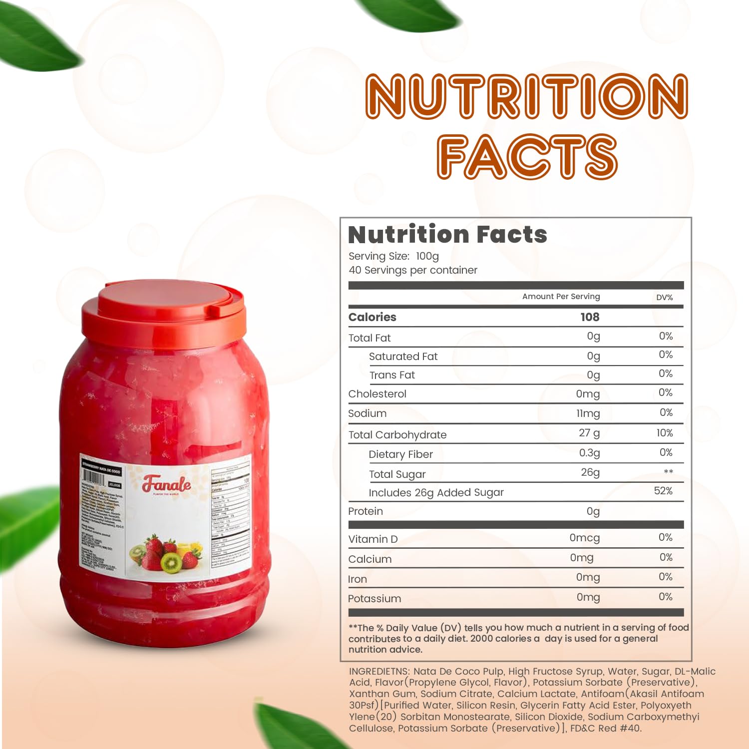 New Fanale Coconut Jelly Topping nata de coco for Boba Tea | Ice Cream | Yogurt | Smoothie | Milk Tea | Desserts (Strawberry, 8.3 lb)