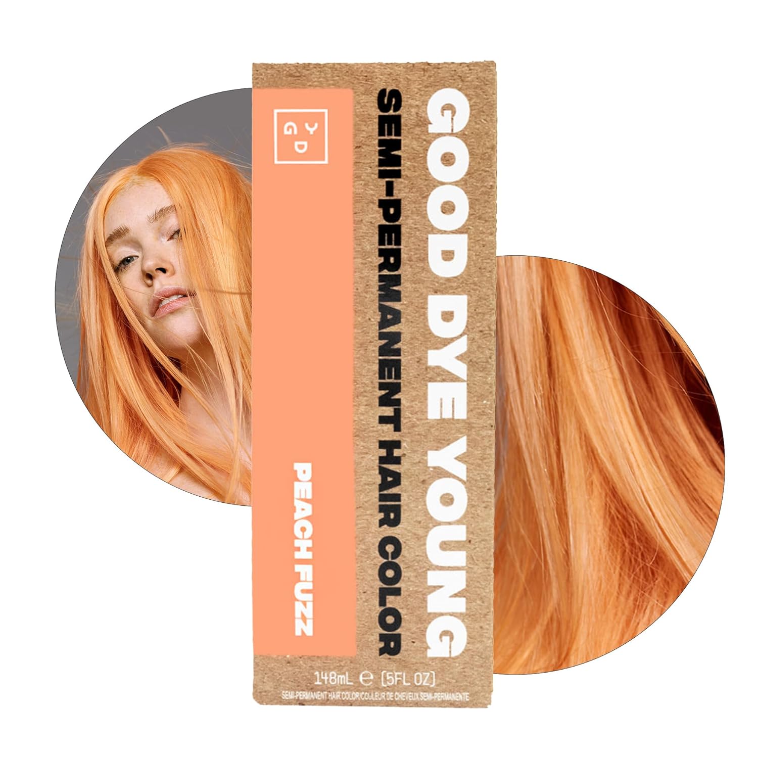 - PEACH FUZZ HAIR DYE! Our Good Dye Young Hair Dye semi permanent combines salon-grade pigments with a nontoxic, conditioning formula that deposits ultra-vibrant color. Our temporary hair dye combines a high-quality cream base with essential oil benefits.
