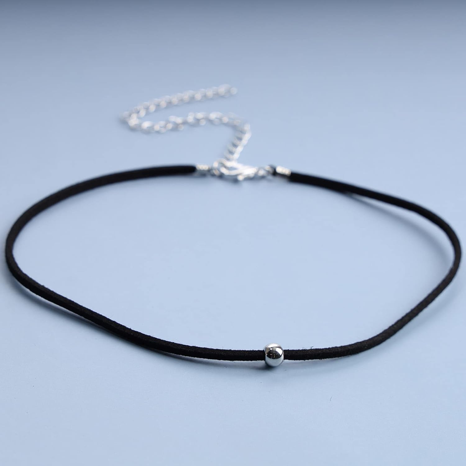 Boho Leather Choker Necklace Thin Black Suede Velvet Necklace Chain Vintage Minimalist Beaded Necklace 90s Chain Jewelry for Women Gifts