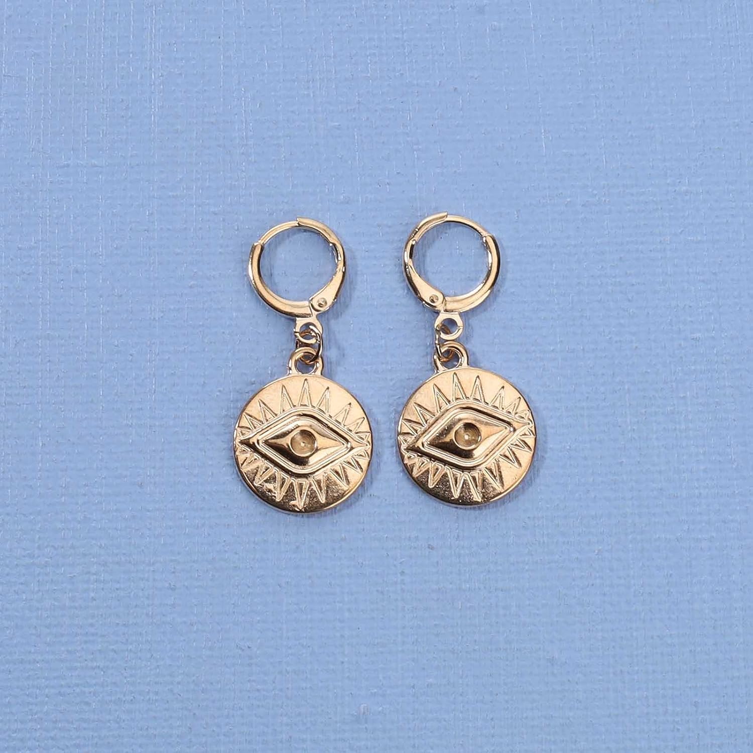 Evil Eye Coin Earrings Gold Disc Drop Earrings Evil Eye Hoop Earrings Vintage Lucky Charm Earrings Jewelry for Women and Girls
