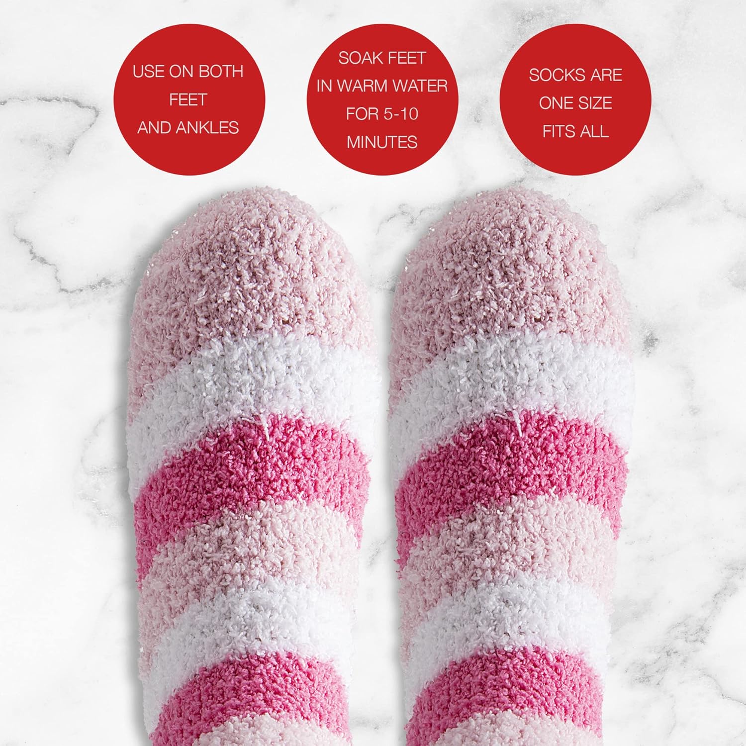 - Set includes: This pedicure set comes with pink fuzzy socks, as well as festive peppermint scented foot lotion and foot scrub all packaged in a winter themed Present box.