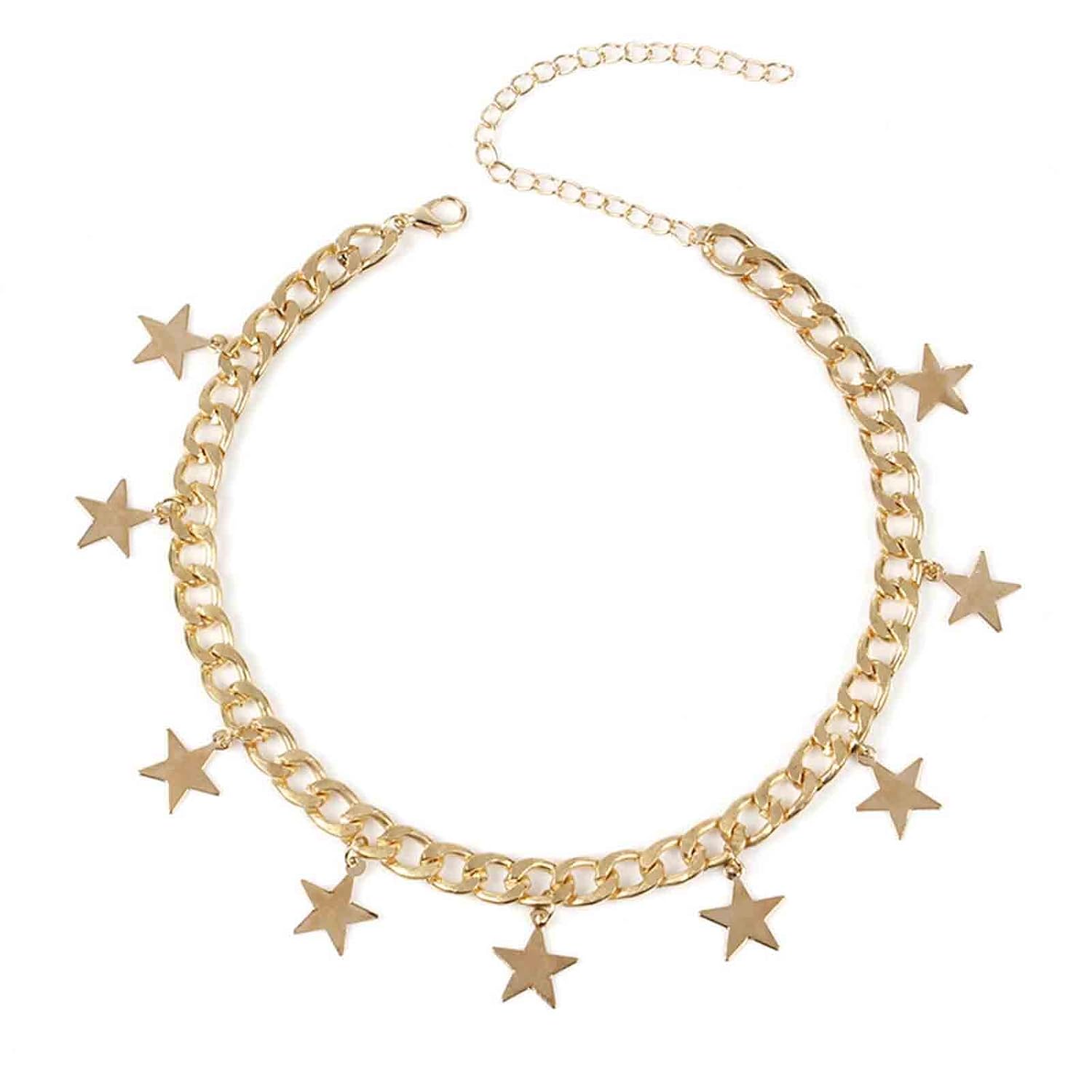 Boho Star Dangle Choker Necklace Gold Chunky Curb Chain Necklace Punk Thick Chain Choker Necklace Minimal Short Chain Necklace Jewelry for Women and Girls