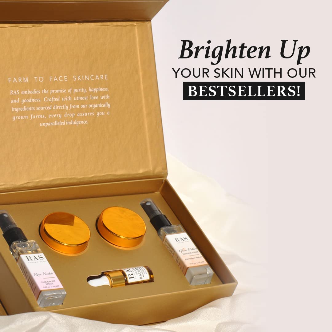 Quick Glow Kit, Hydrating Essence Toner, Exfoliating Face Cleanser, 24K Gold Face Elixir, Face Gel Serum, Face & Body Toner | Smoothens & Softens Skin, Deep Cleanser | Set of 5 - RAS LUXURY OILS