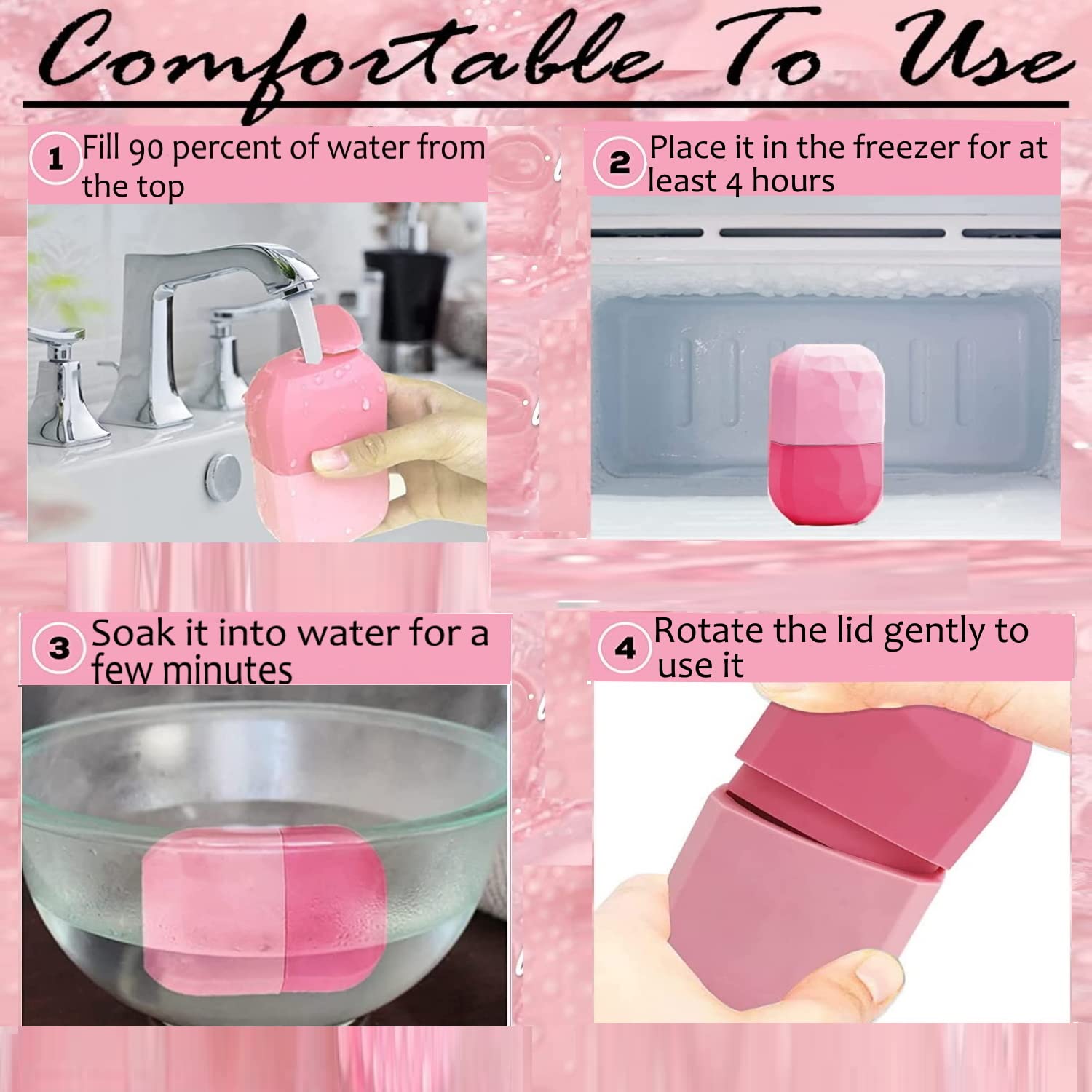 - Effective Ice Rollers: Our ice roller for face and eye helps to improve dry skin, prevents wrinkles & give face care to you. It has a quality to shrink pores, reduce pimples, remove fine lines and lubricate the skin with glow and brightness. Face ice roller is appropriate and effective in daily use. Roll it for quick and instant relief from muscular pain, tension or minor injury. Contour cube is a perfect option on birthday gifts for women.