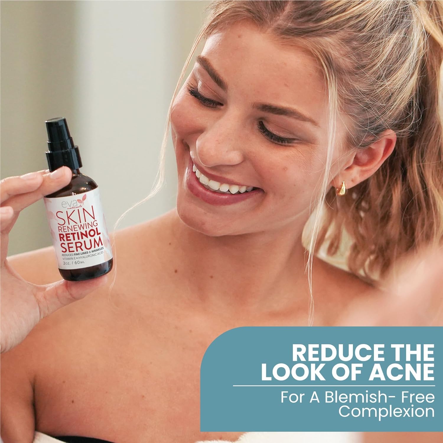 - Acne and Breakout Serum - Acne breakouts can be stopped in their tracks with Eva Naturals Hyaluronic Acid Retinol Serum. Not only does it help prevent acne, it also helps to heal and reduce acne scars. Retinol tightens the pores which prevents and reduces blackheads & whiteheads, while also helping to manage your skin's oiliness and get rid of dead skin cells.