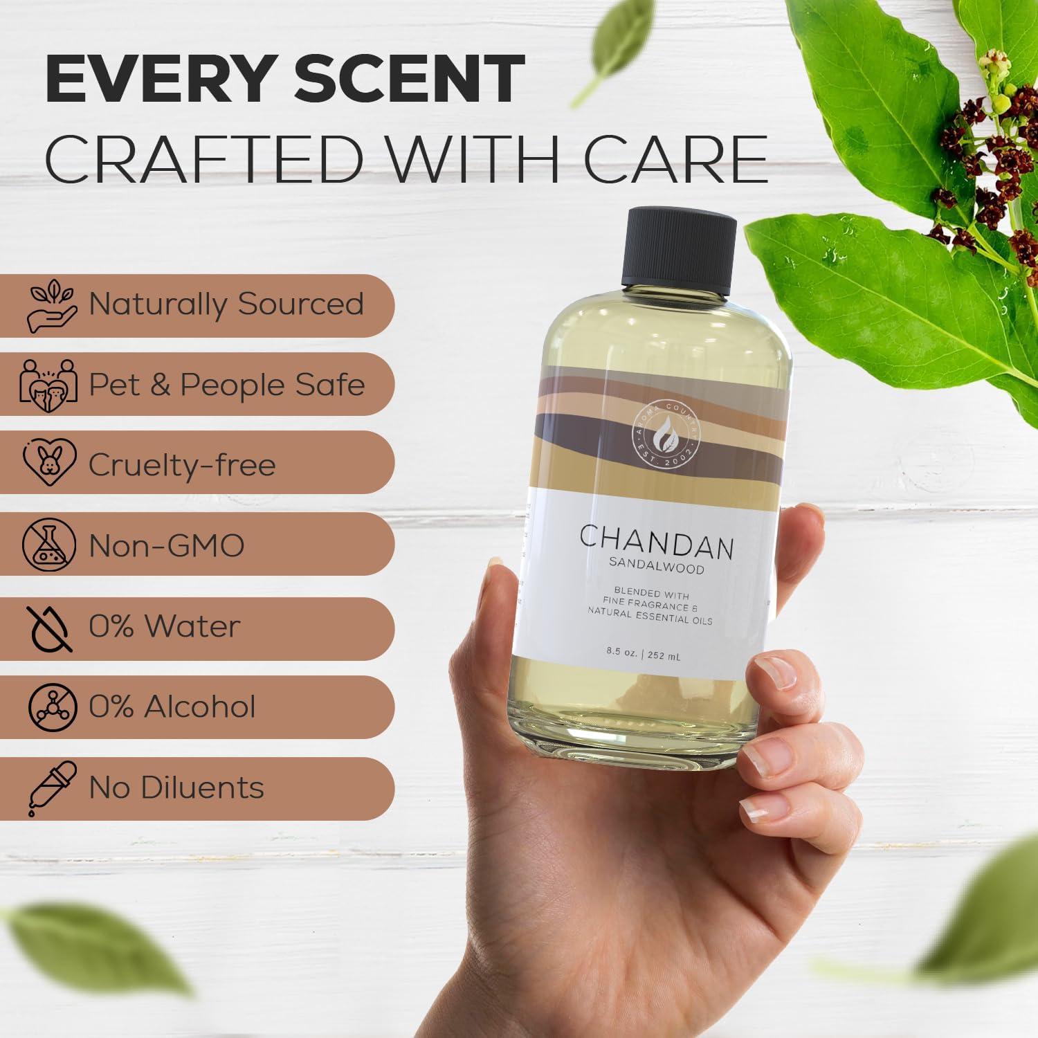 Aroma Country Chandan Diffuser Oil - Luxury Essential Oils for Diffuser Refill & Air Freshener Room Spray - Long-Lasting & Natural Home Fragrance, Sandalwood Scented Oil for Diffusers (8.5 Fl. oz)