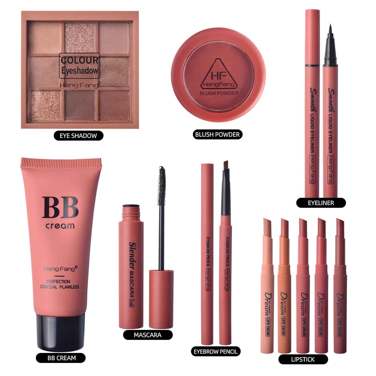 - 【Makeup Set Contents】:This makeup set contains a variety of shades and styles, allowing you to find the makeup that suits you best. The sall in one makeup kit includes: velvet lipstick*5, blush*1, eyeliner*1, Jiu gong ge eyeshadow*1, eyebrow pencil*1, slender mascara*1, BB cream*1, the sweetest gift for your loved ones.