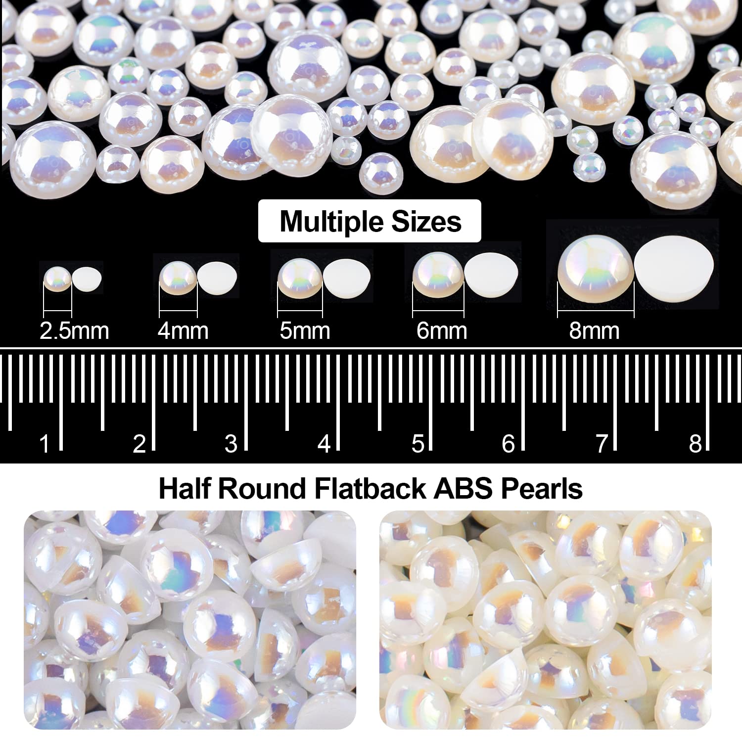 - 💎COLORFUL, MULTI-SIZE AND GREAT AMOUNT -- This Set Provides 12 Colors of Nail Rhinestones With 4 Sizes(2mm, 3mm, 4mm, 5mm), And Flatback Half Round WhiteAB&BeigeAB Pearls With 5 Sizes(2.5mm, 4mm, 5mm, 6mm, 8mm). Approximately 3790 Pcs of Gems Beads in Total.