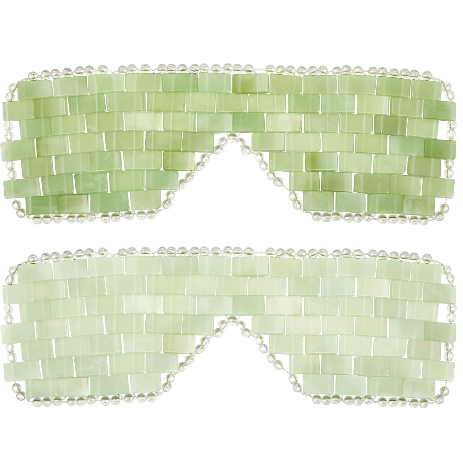 Hercicy 2 Pcs Jade Eye Mask Green Jade Stone Eye Mask Facial Cooling Mask for Alleviate Puffiness Face Massage Relax Eyes Relieve Migraine Meditation Beauty