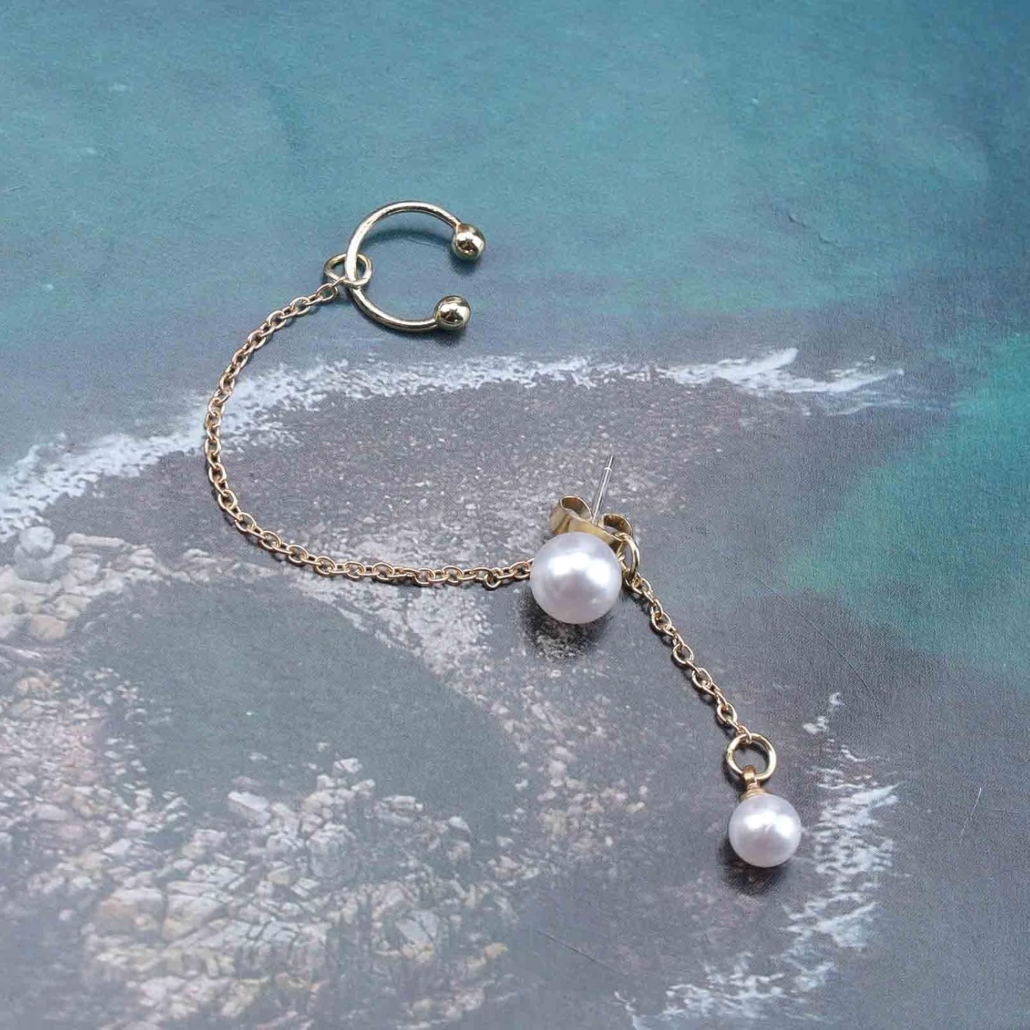 - Pearl chain ear cuff earrings with real images,perfect for everyday wear,Valentine's Day, birthday,evening party etc.