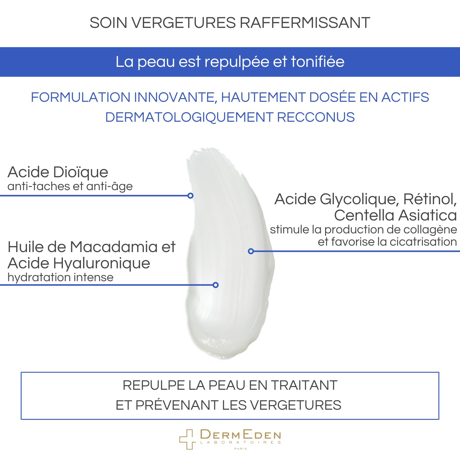 - The "product perk": The combination of Glycolic Acid, Centella Asiatica and Retinol which are the active agents that have the most satisfying level of proof on stretch marks treatment.