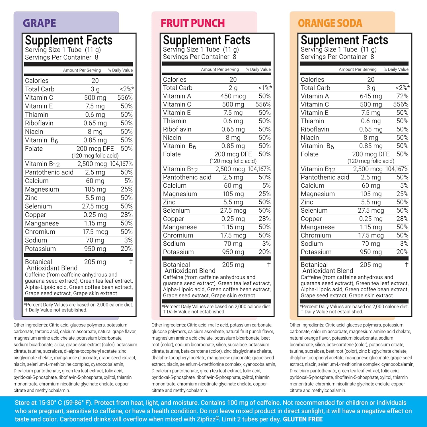 - Combo Pack β This pack contains 8 tubes each of Grape, Orange Soda, and Fruit Punch. Simply add Zipfizz powder to 16-20 ounces of water or other non-carbonated beverage, shake, and enjoy!
