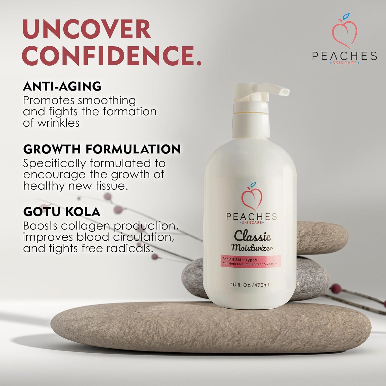 - Clean Hydration - Give your skin the hydration it needs with the Peaches’ Classic facial cream! Formulated with active ingredients, this hydrating face cream will deeply hydrate your skin without leaving you feeling clogged or oily.
