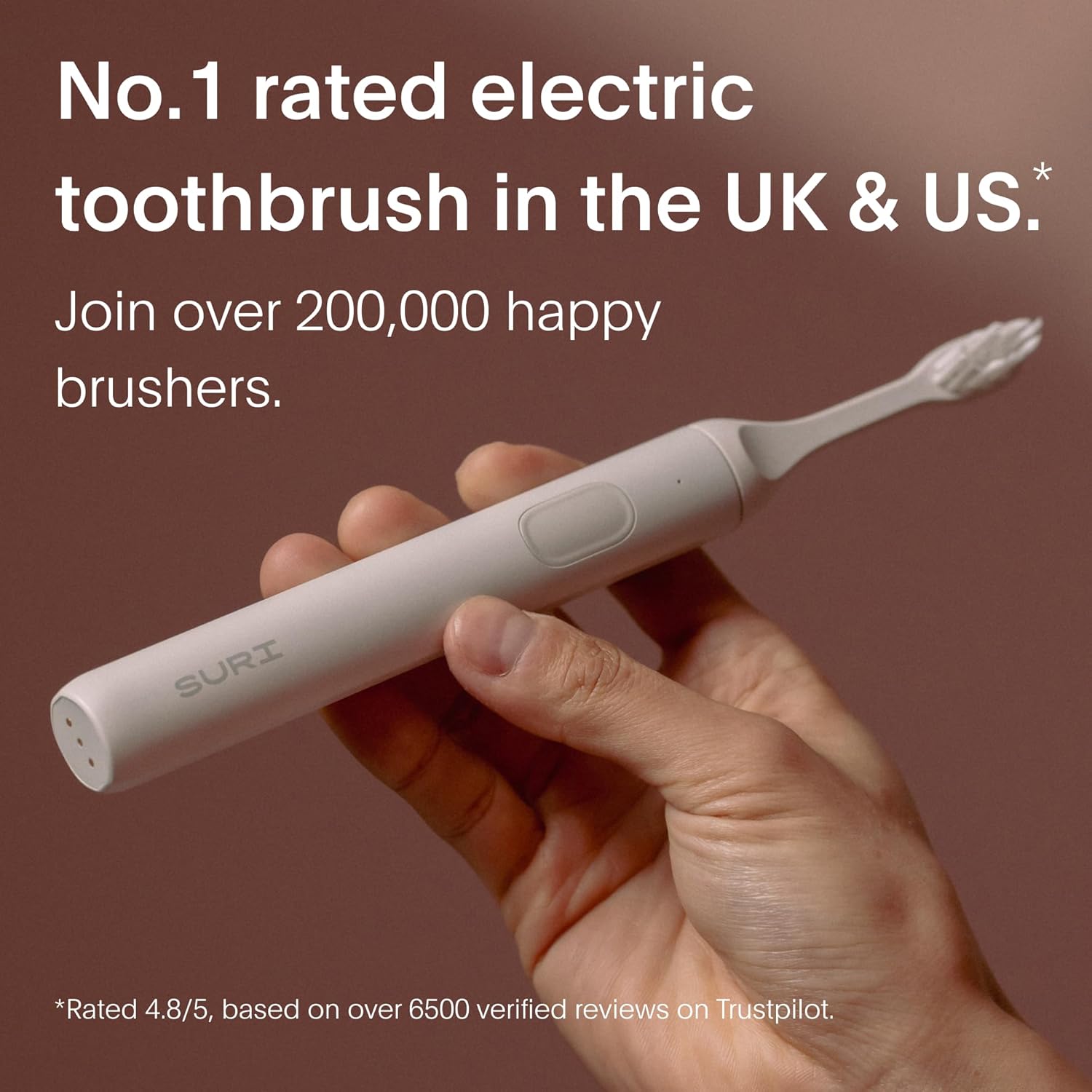 - 3X CLEANER TEETH AFTER JUST ONE USE - Designed & tested by Dentists. Our SURI toothbrush is clinically tested to remove 300% more plaque than a manual toothbrush. Electric is the way to go for those looking for healthier teeth and less sensitive gums
