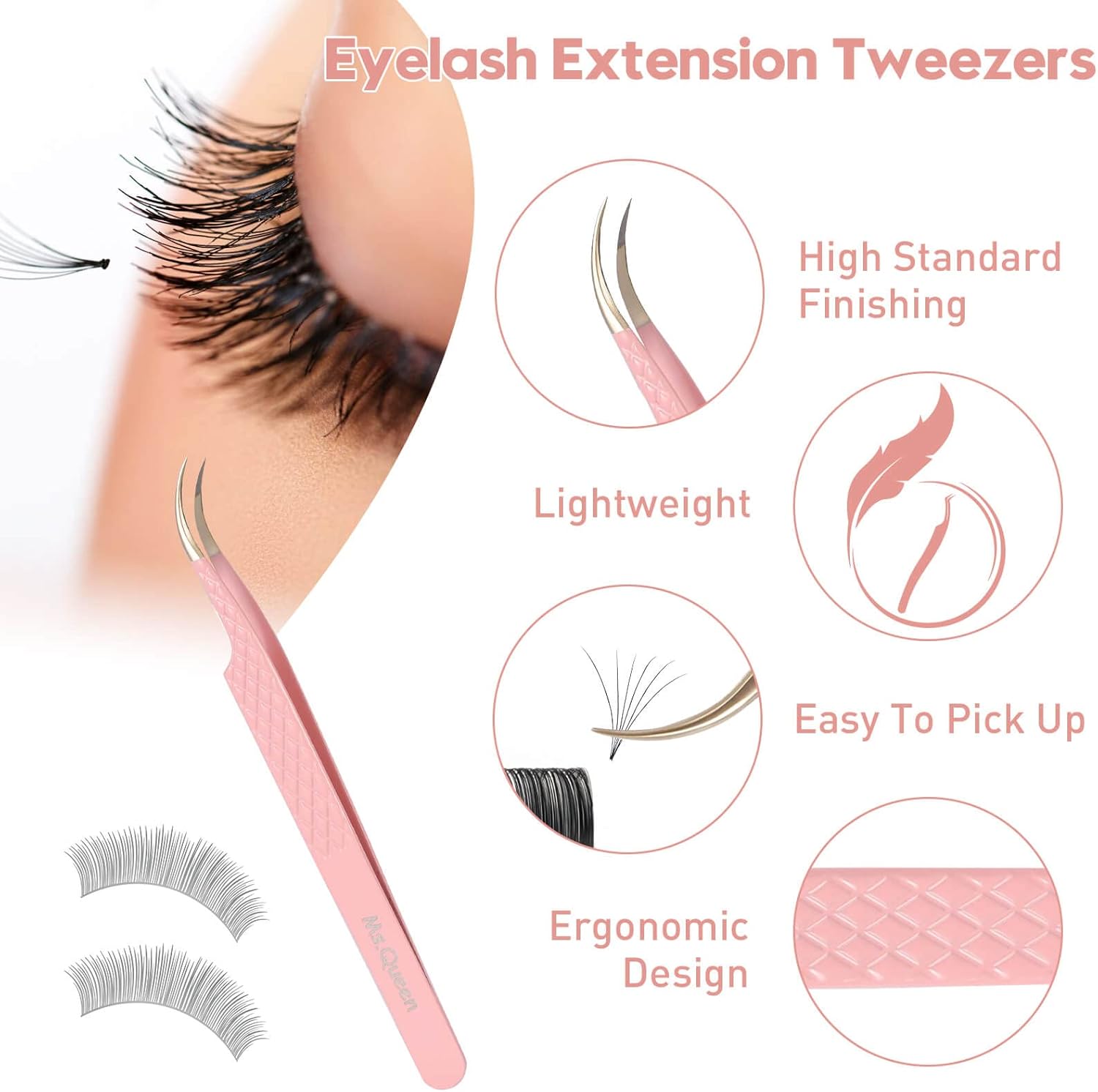Ms.Queen Volume Lash Tweezers Set,2Pcs Fiber Tip 45 Degree Volume and Curved Isolation Eyelash Extension Tweezers