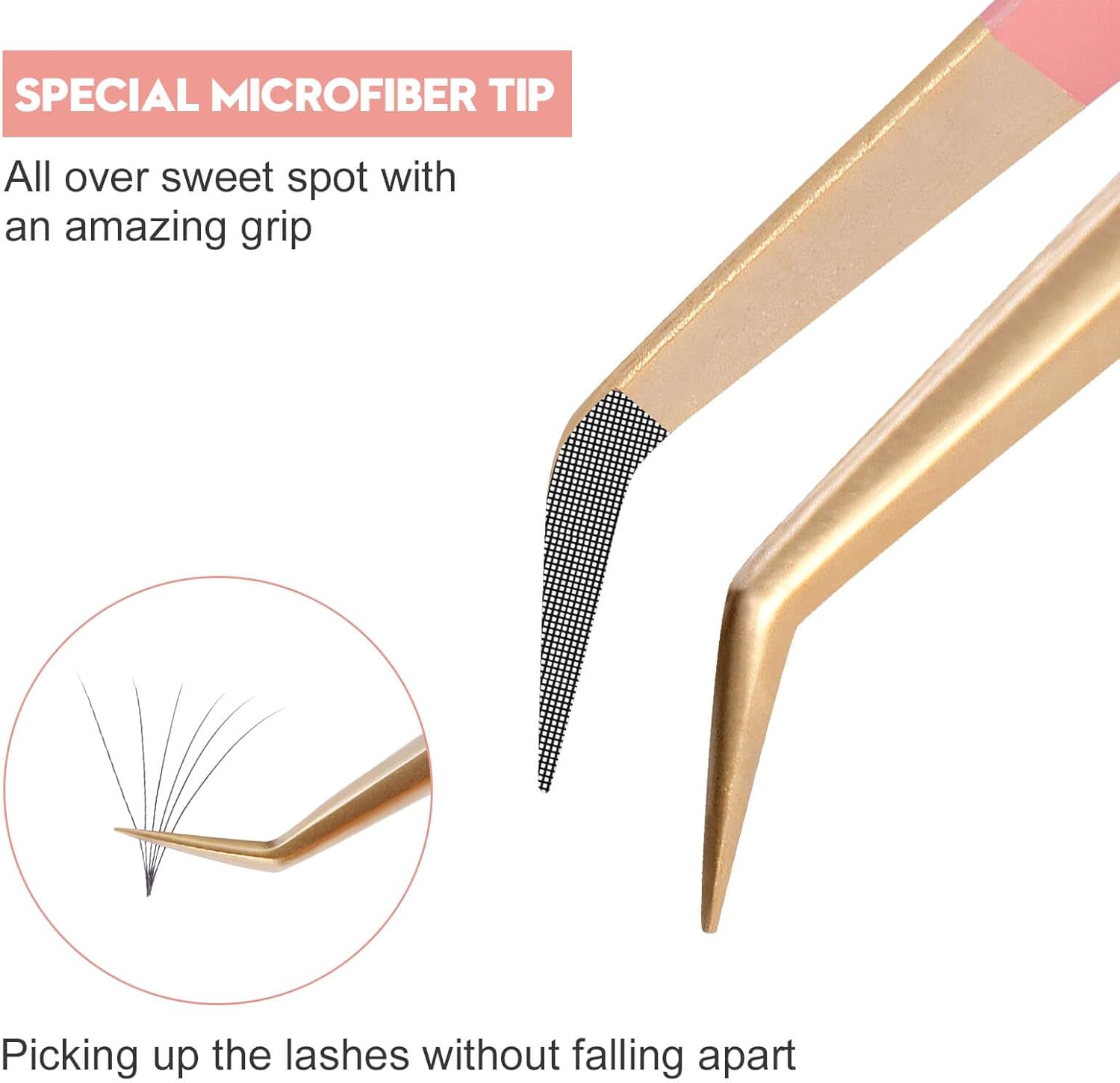 - Fiber Tip Lash Tweezers:Specifically designed with a microfiber tip Special microfiber tip—All over sweet spot with an amazing grip, picking up the lashes without falling apart