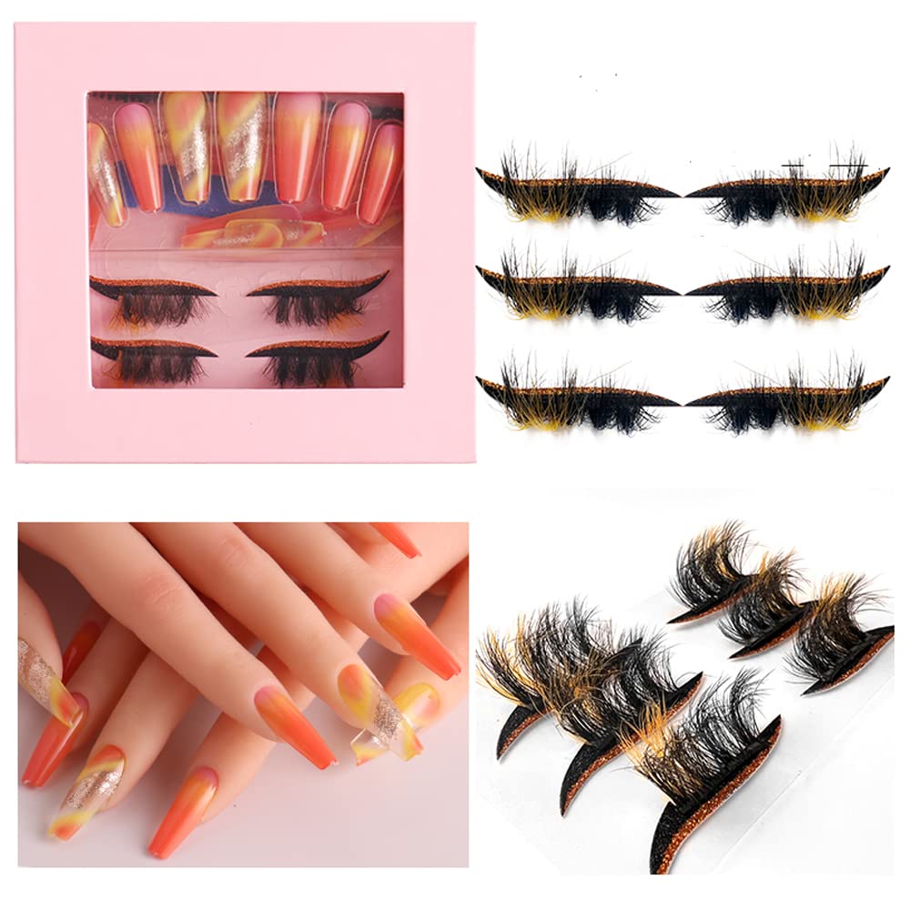 HBZGTLAD 3 in1 color eyeline Press On Nail with Eyelash Packing Boxes Set Package Pink White DIY Lashes and Nail Suit Box 1set… (SET-53)