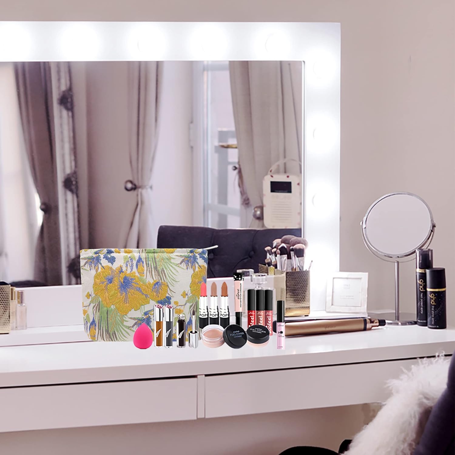 - Multi-Purpose:Use this sturdy pouch to easily pack and carry makeup,jewelry,beauty items,brushes,pencils,small electronic accessories,toiletries,essential oils,medcine,tools or other travel essentials.This cosmetic pouch is the perfect balance between funchtion and style.