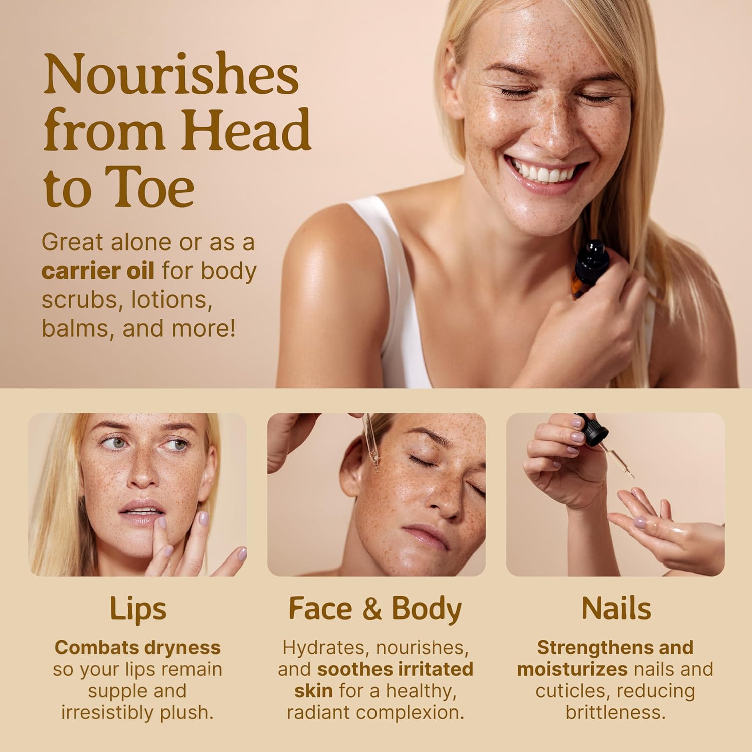 - Special Feature : 100% Money Back Guarantee. Bottled in the USA. Veteran-owned business., 100% Pure. Organic. Unrefined. Cold-pressed. Cruelty-free. Natural., Free from: parabens, hexanes, additives, preservatives., Minimizes Wrinkles. Leaves Skin Smooth and Soft. Prevents Stretch Marks. Promotes Skin Elasticity., Registered Organic with the State of California Dept of Public Health Food & Drug Branch. Reg# 112841. 100% Money Back Guarantee. Bottled in the USA. Veteran-owned business., 100% Pure. Organic. Unrefined. Cold-pressed. Cruelty-free. Natural., Free from: parabens, hexanes, additives, preservatives., Minimizes Wrinkles. Lea… See more