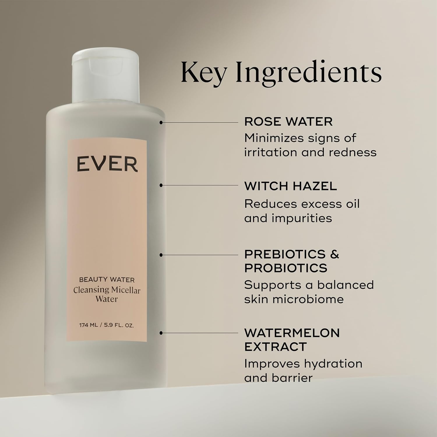 EVER Beauty Water - Cleansing Micellar Water, Eye Makeup Remover, Rose Water Cleanser, Sensitive Skin Water Makeup Remover